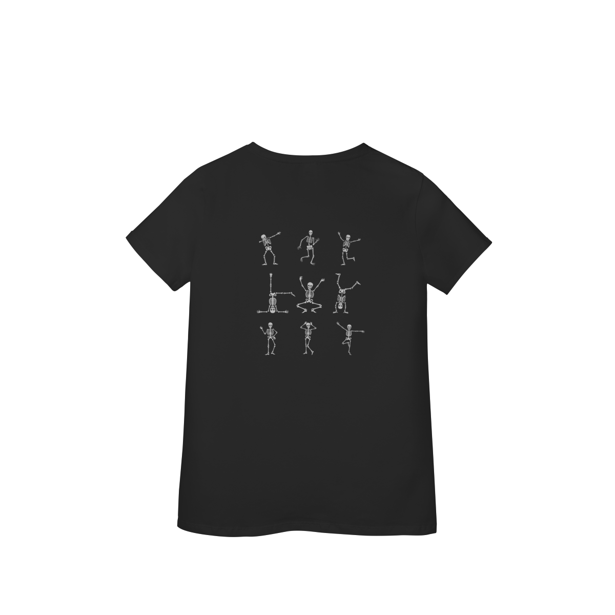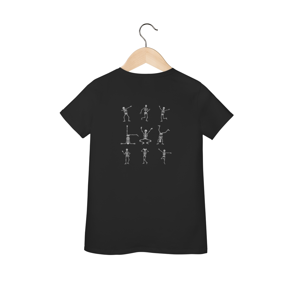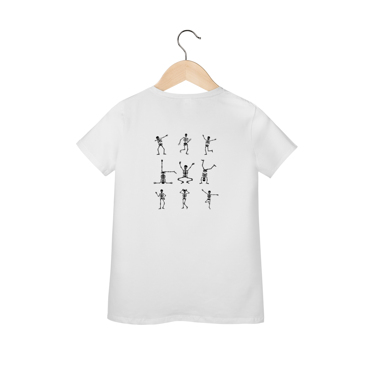 Leve seu visual para outro plano com esta camiseta que mistura irreverência e atitude: uma caveirinha em destaque frontal, acompanhada de várias outras dançando nas costas — uma composição gráfica que une humor, arte sombria e estilo descolado.