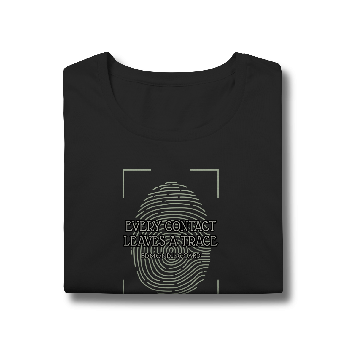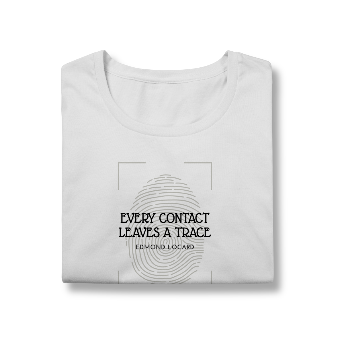 Esta camiseta presta homenagem a Edmond Locard e seu princípio fundamental da ciência forense: “Every contact leaves a trace”. A estampa mostra uma impressão digital em destaque, evocando o poder oculto das evidências das latentes.