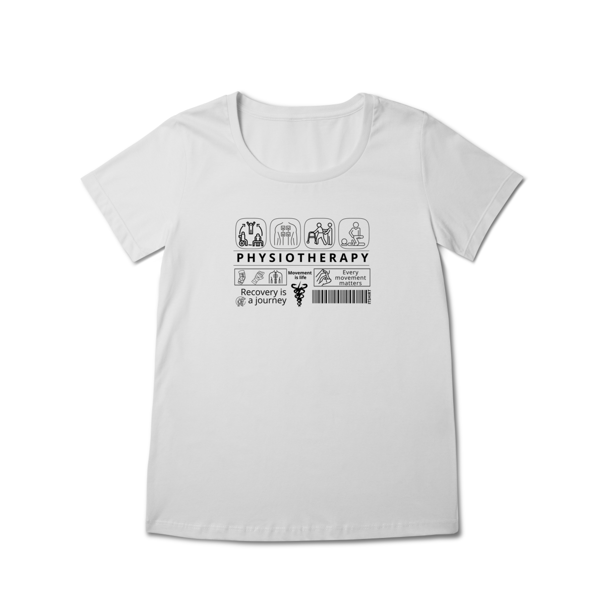 Uma peça pensada para celebrar o poder da reabilitação, da persistência e do cuidado com o corpo: esta camiseta une símbolos e frases que representam a essência da fisioterapia — o cuidado, a recuperação e a esperança.