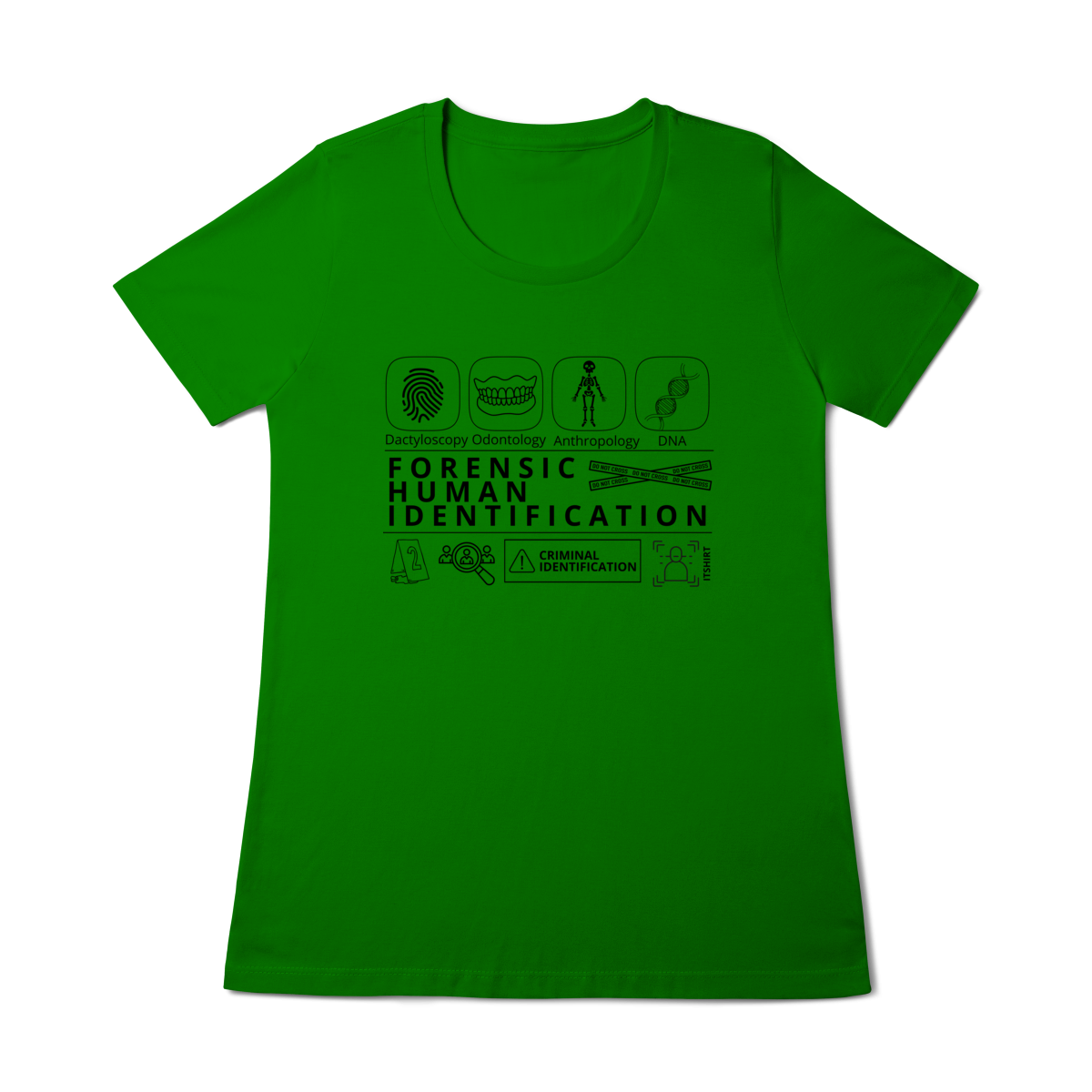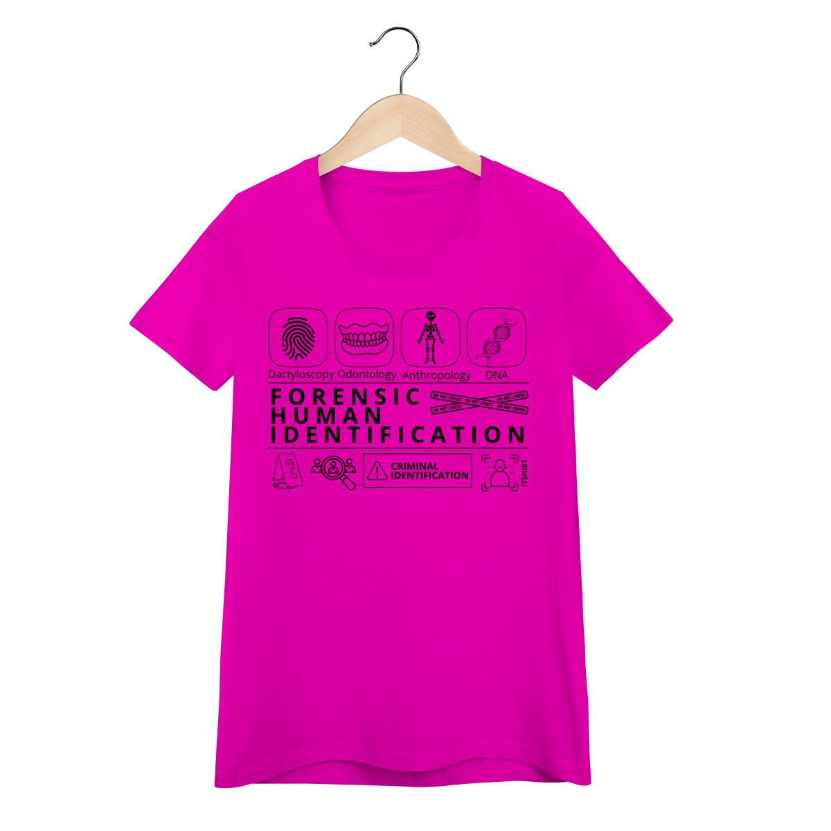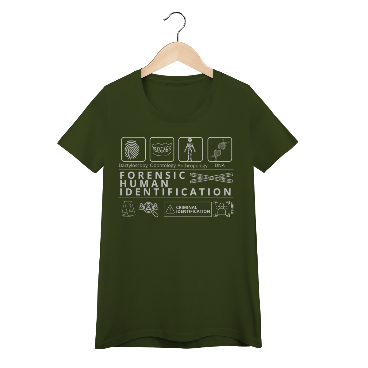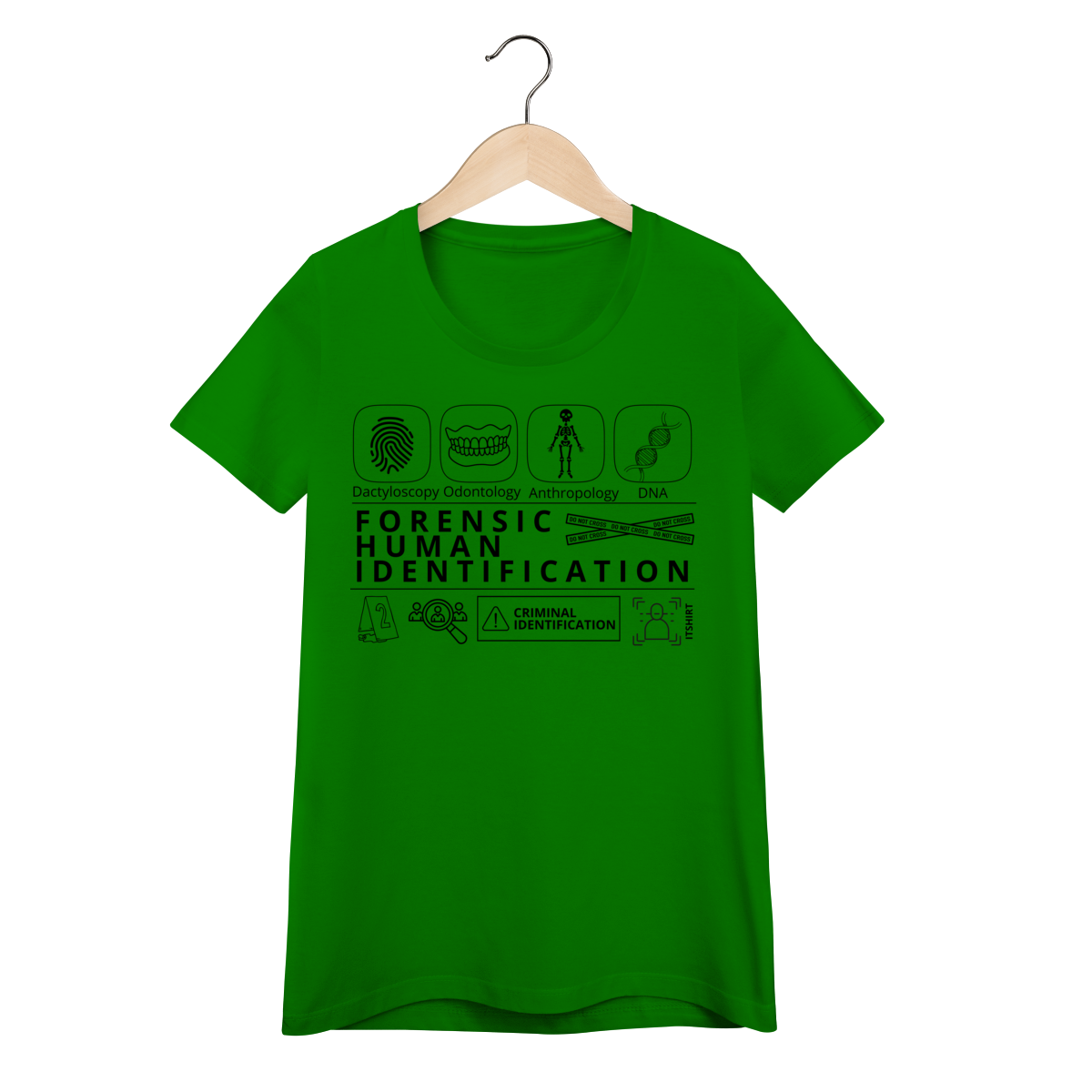 Esta camiseta tem uma estampa inspirada nos principais métodos forenses: papiloscopia, antropologia, odontologia legal e DNA — formando um visual que homenageia a precisão científico-forense. Design exclusivo e significativo: reúne os campos mais relevantes da perícia de identificação, celebrando cada técnica como parte essencial da investigação criminal e humana.