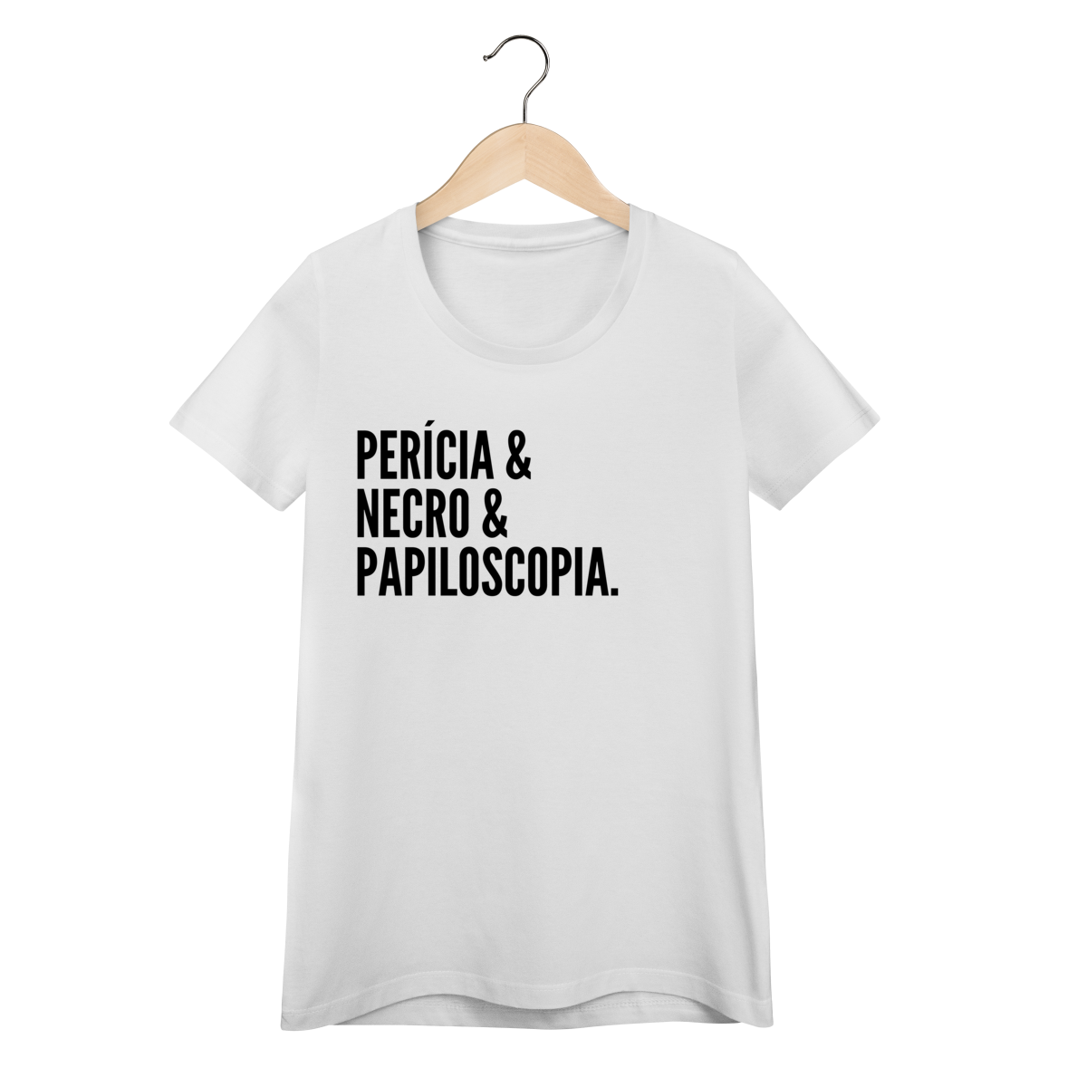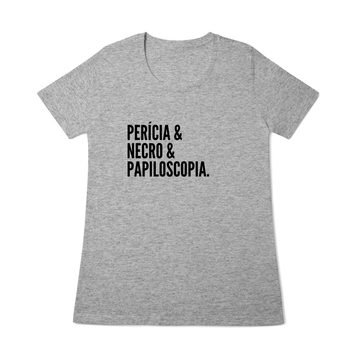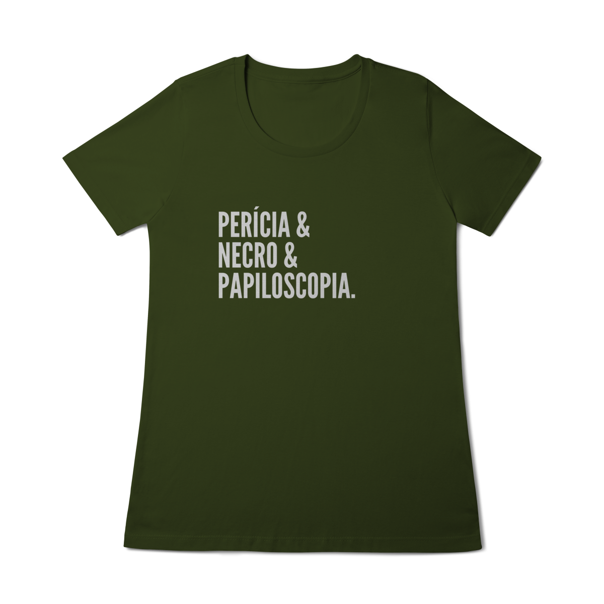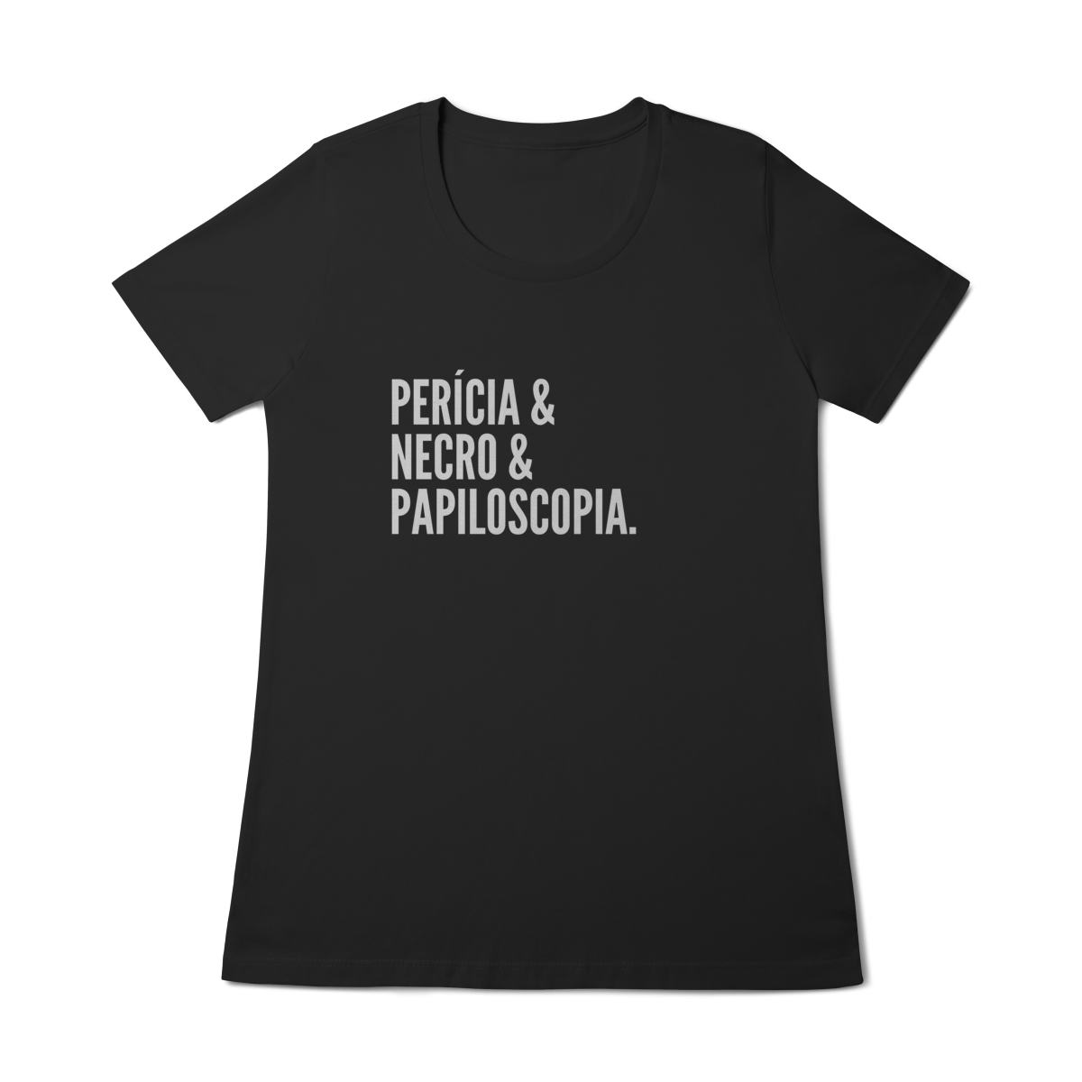Expresse admiração pela ciência forense com esta camiseta impactante. A estampa exibe as palavras “Perícia & Necro & Papiloscopia”, simbolizando os pilares da identificação humana em cadáveres através de impressões digitais, também chamada de necropapiloscopia.