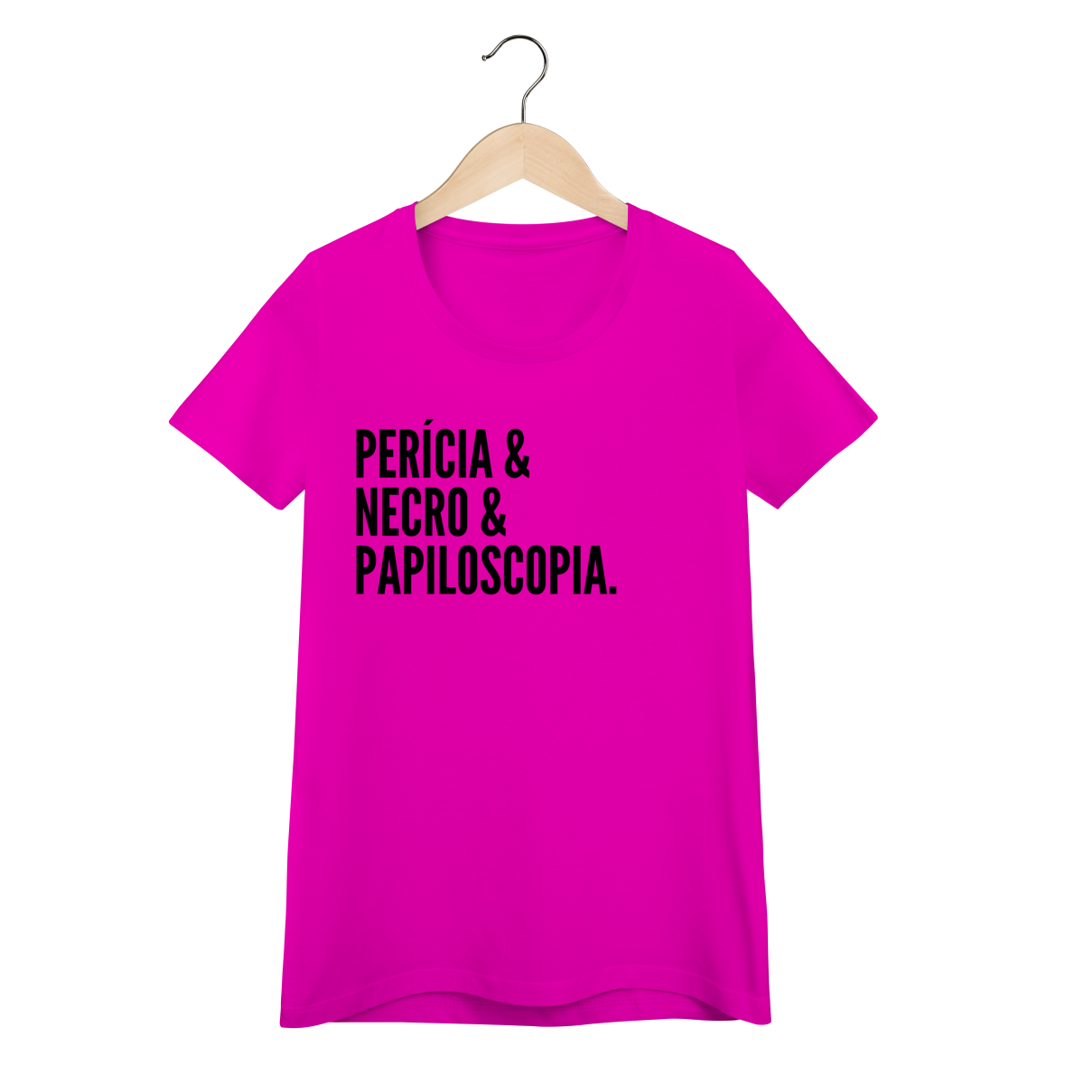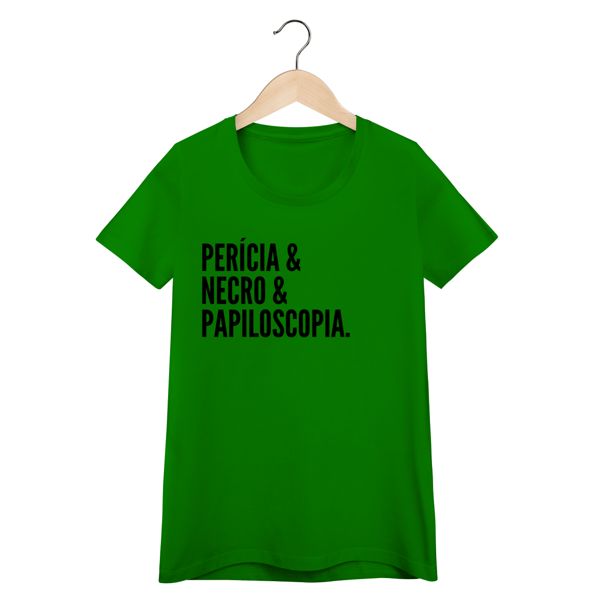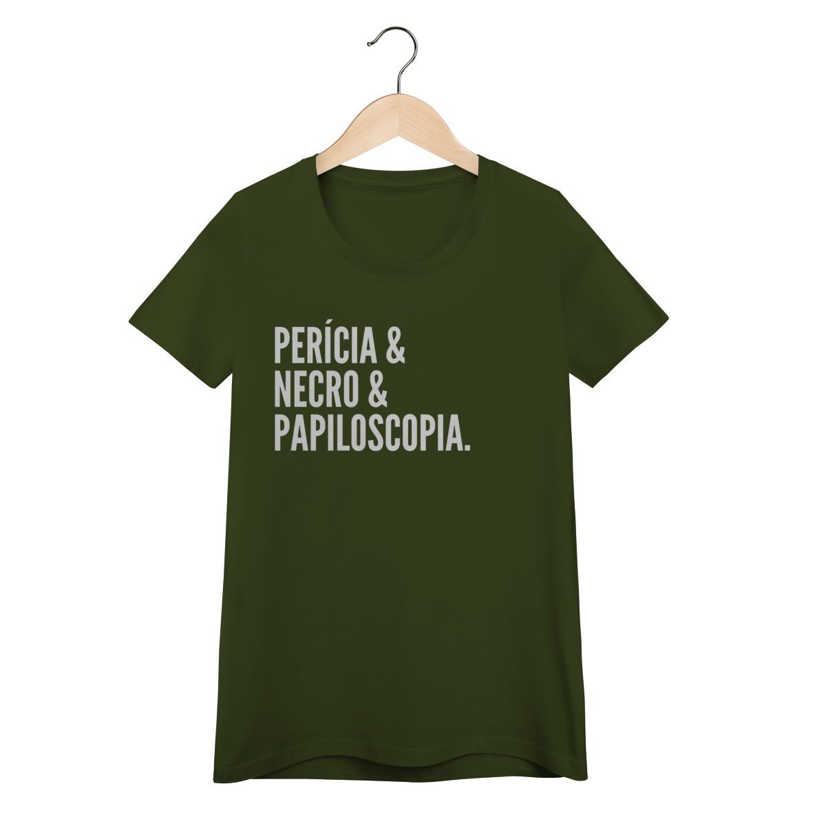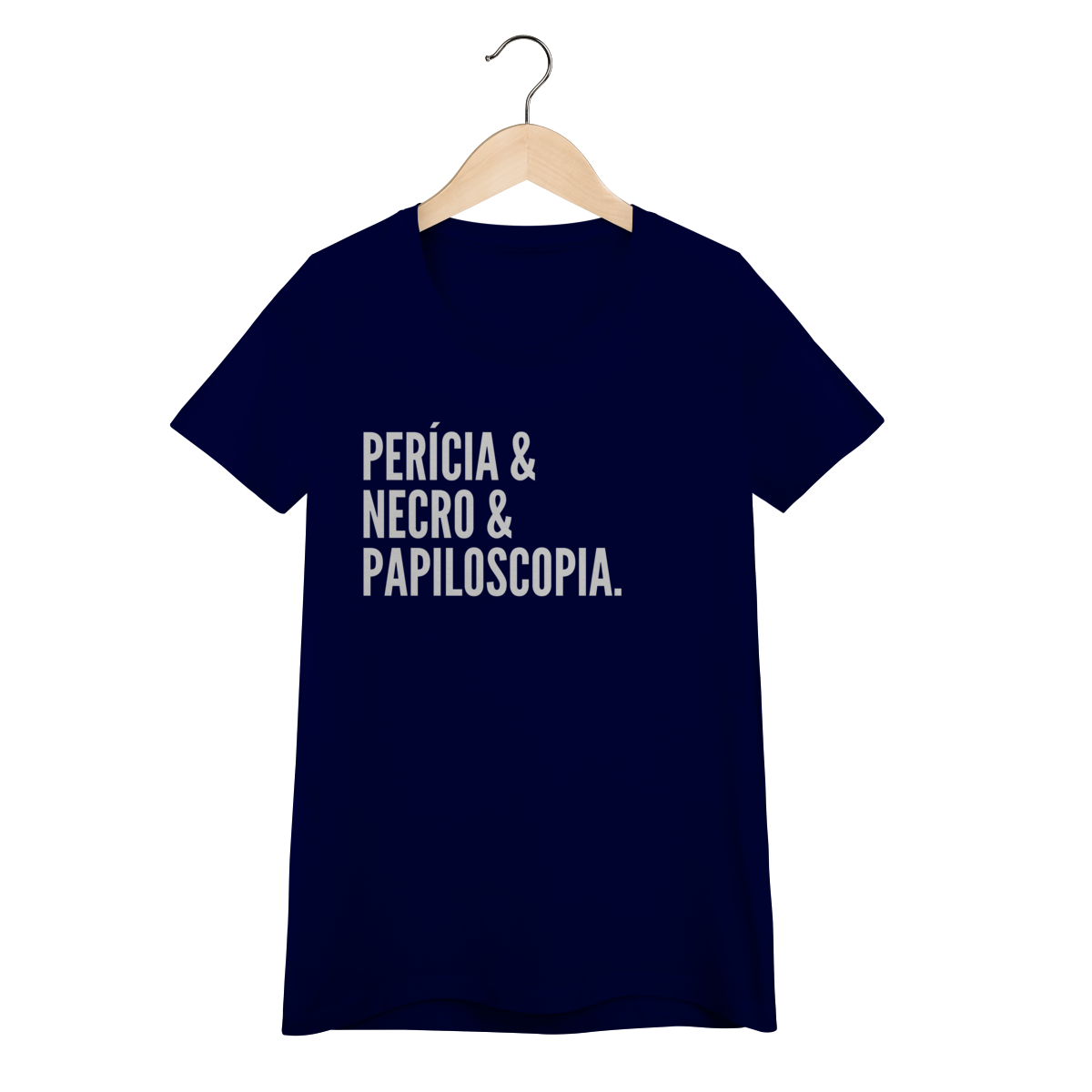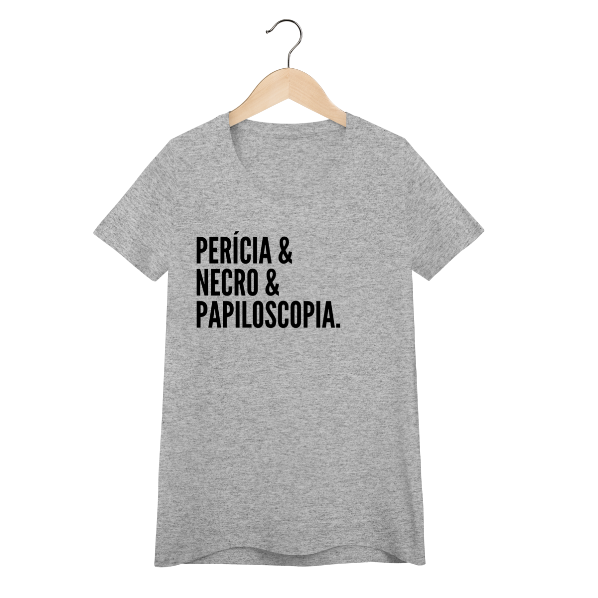 Expresse admiração pela ciência forense com esta camiseta impactante. A estampa exibe as palavras “Perícia & Necro & Papiloscopia”, simbolizando os pilares da identificação humana em cadáveres através de impressões digitais, também chamada de necropapiloscopia.