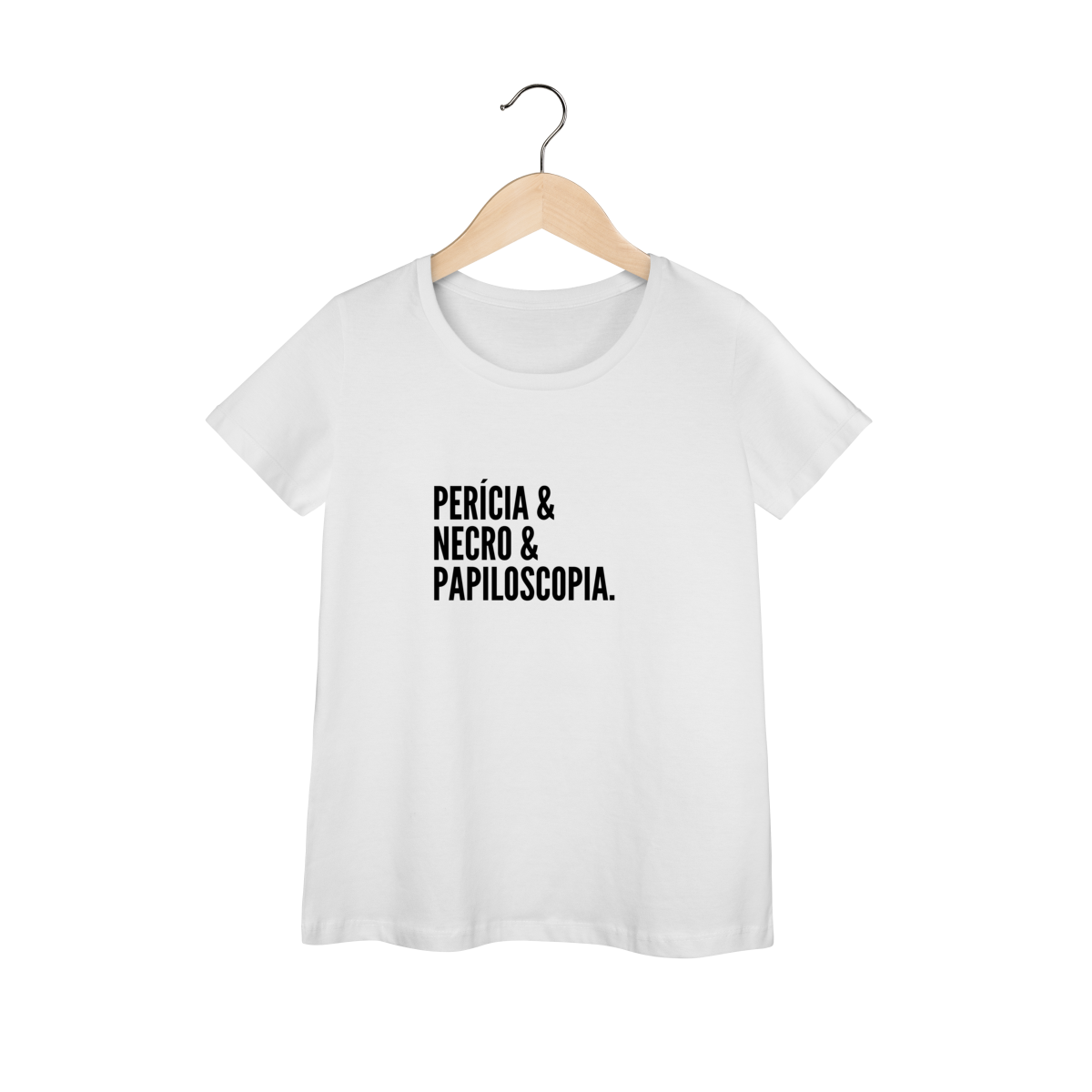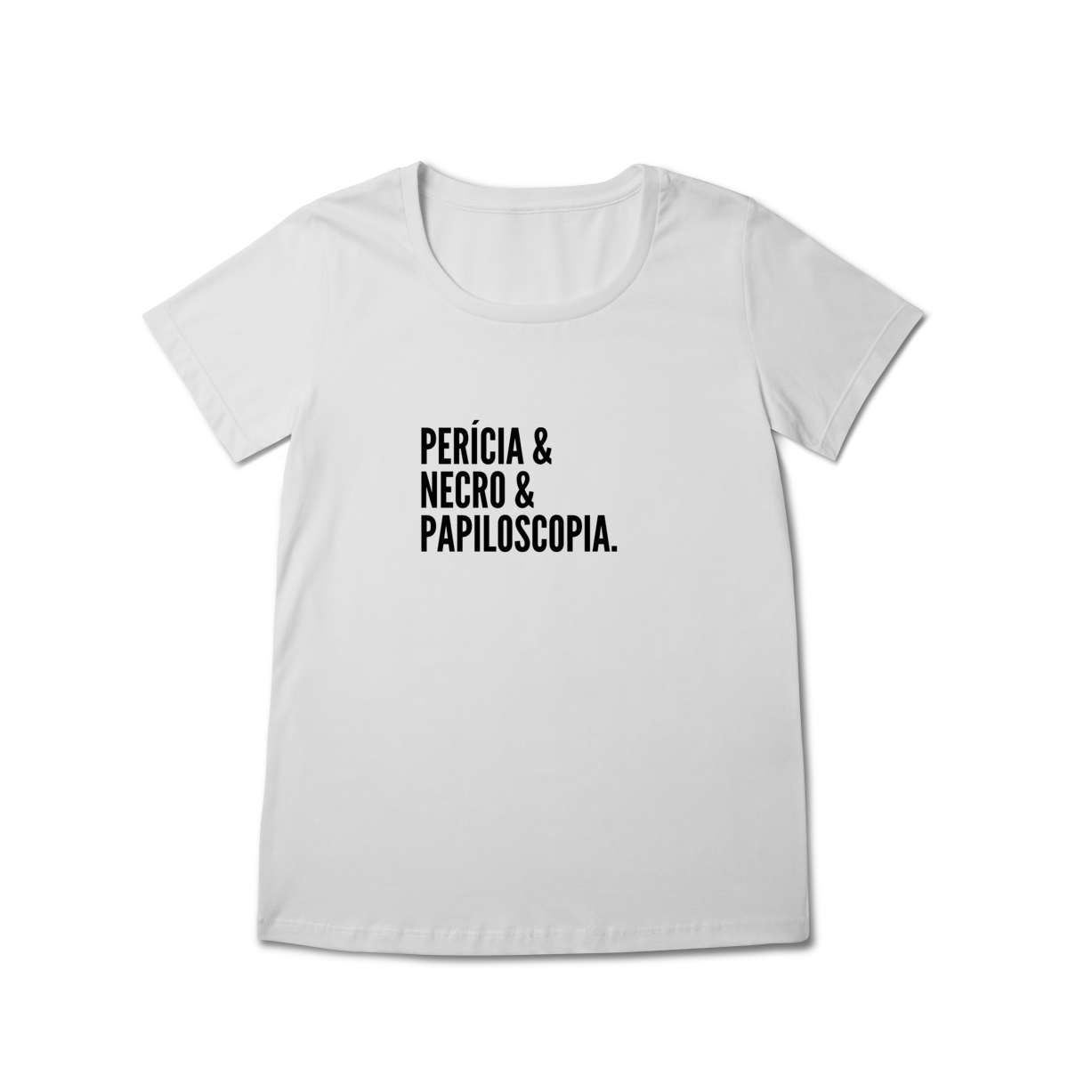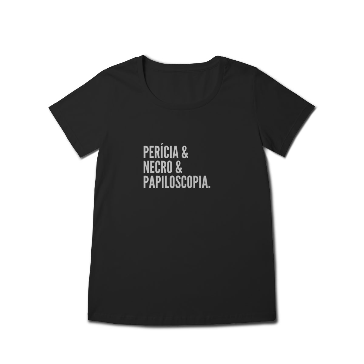 Expresse admiração pela ciência forense com esta camiseta impactante. A estampa exibe as palavras “Perícia & Necro & Papiloscopia”, simbolizando os pilares da identificação humana em cadáveres através de impressões digitais, também chamada de necropapiloscopia.