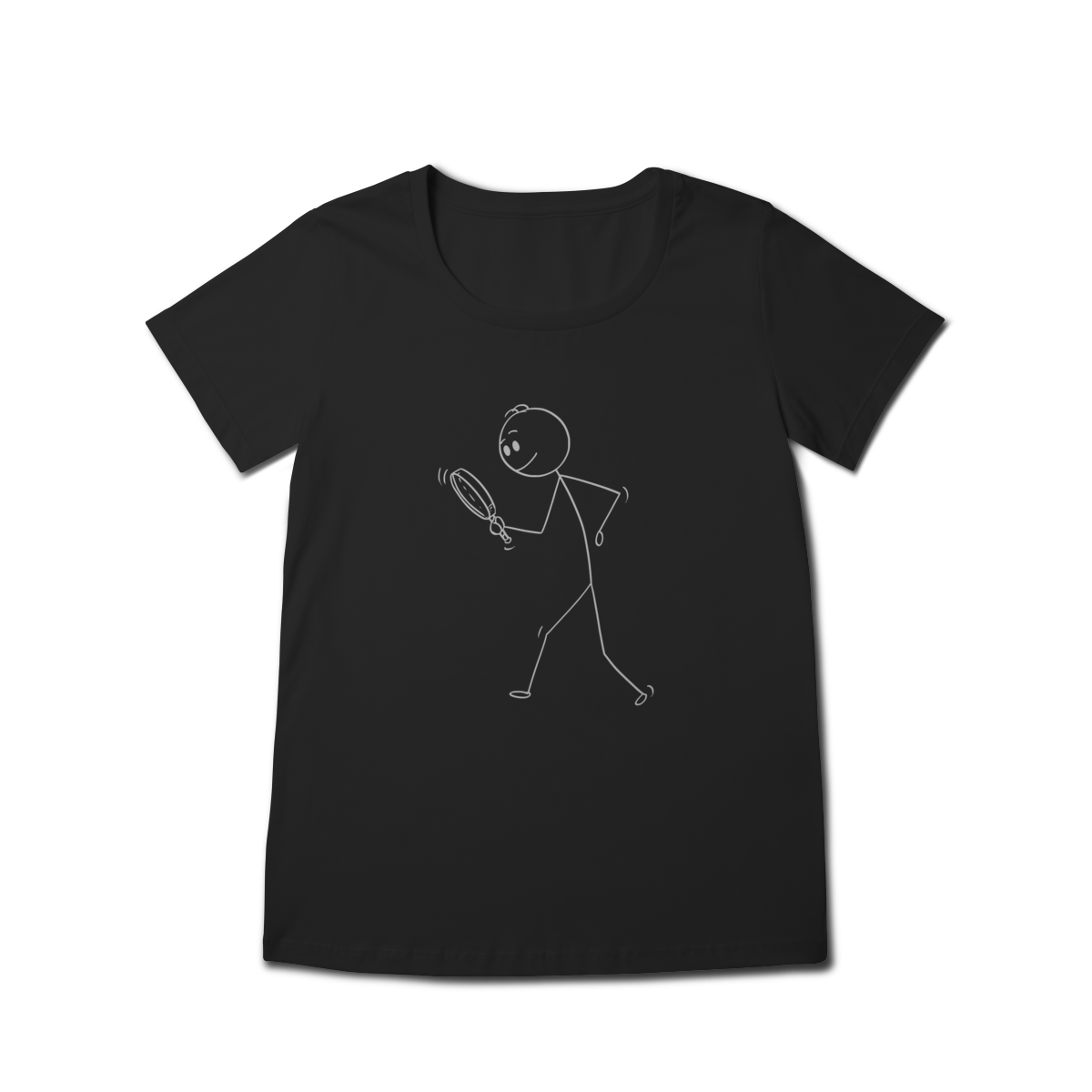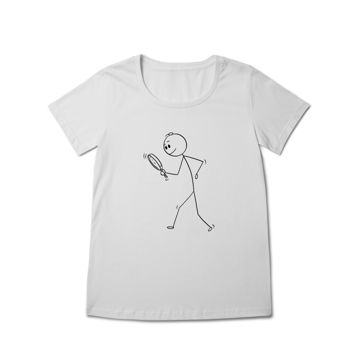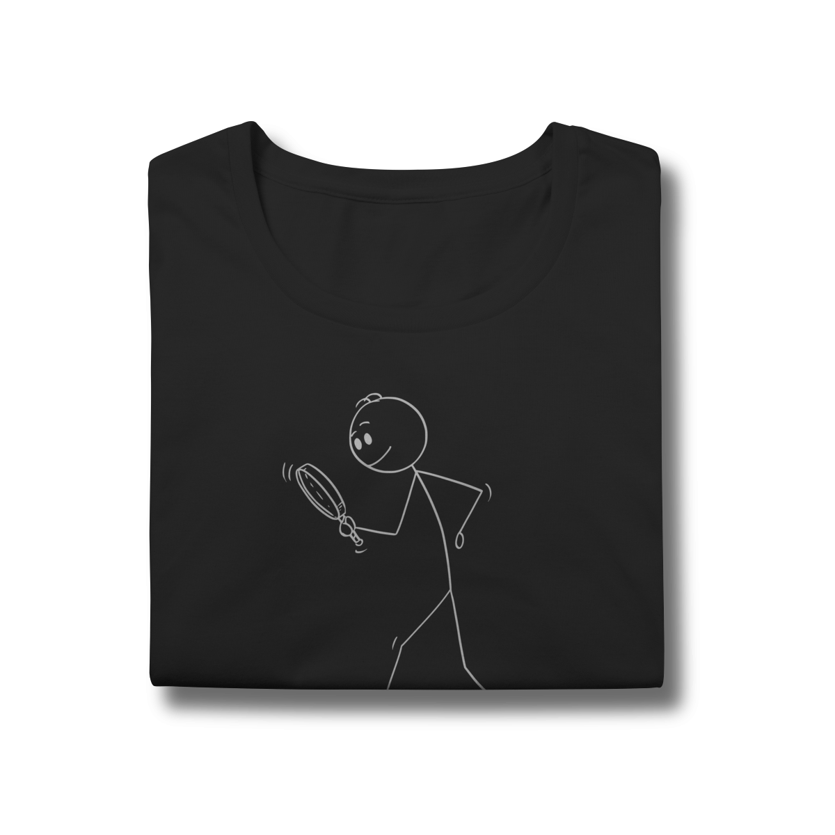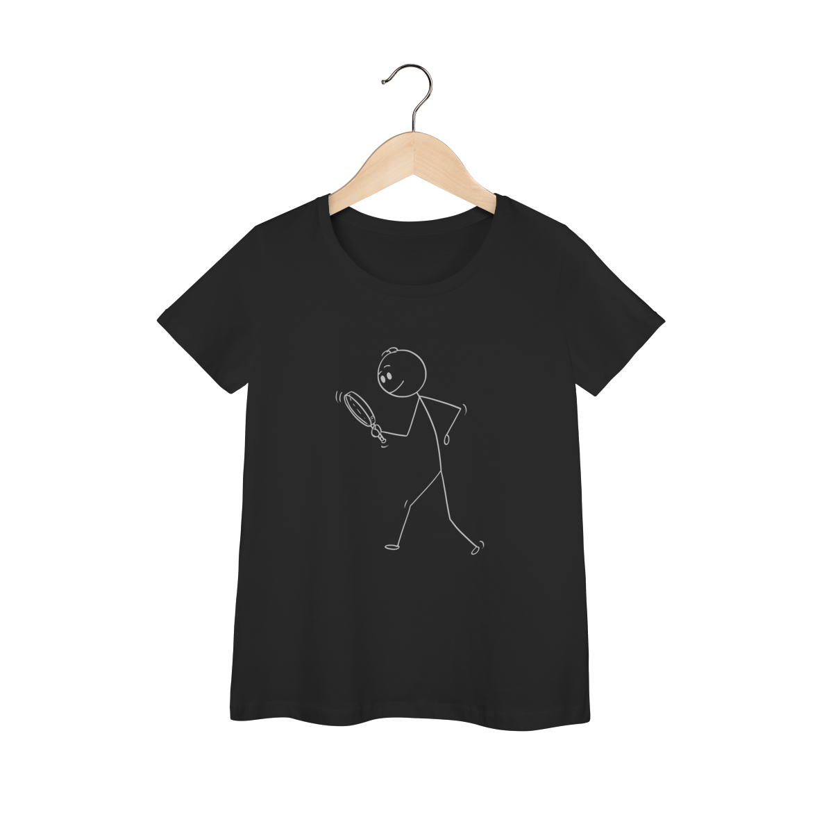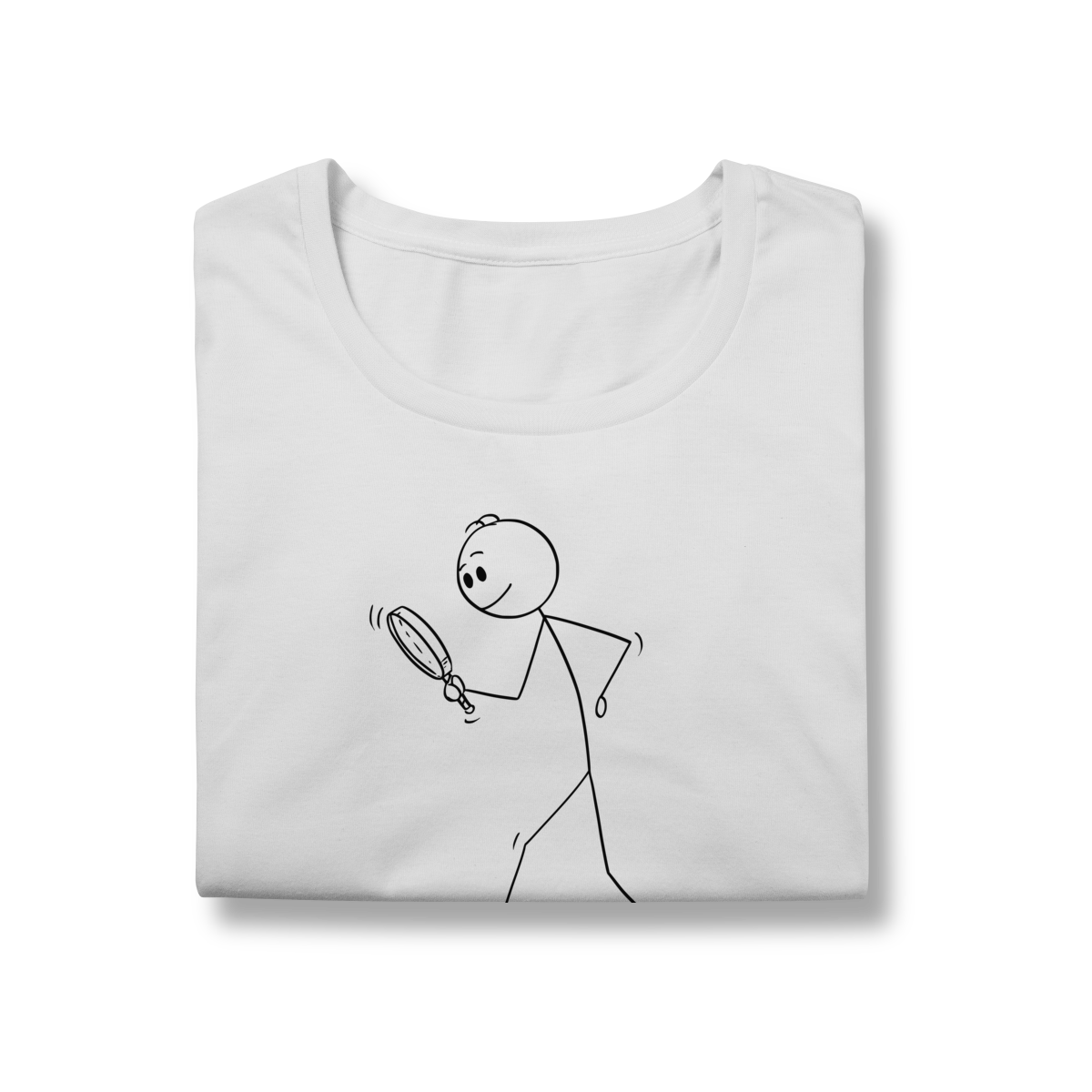 Esta camiseta traz uma estampa criativa e divertida: um bonequinho com lupa, inclinado para baixo, simbolizando a busca minuciosa por pistas — uma homenagem ao trabalho detalhista da perícia criminal.