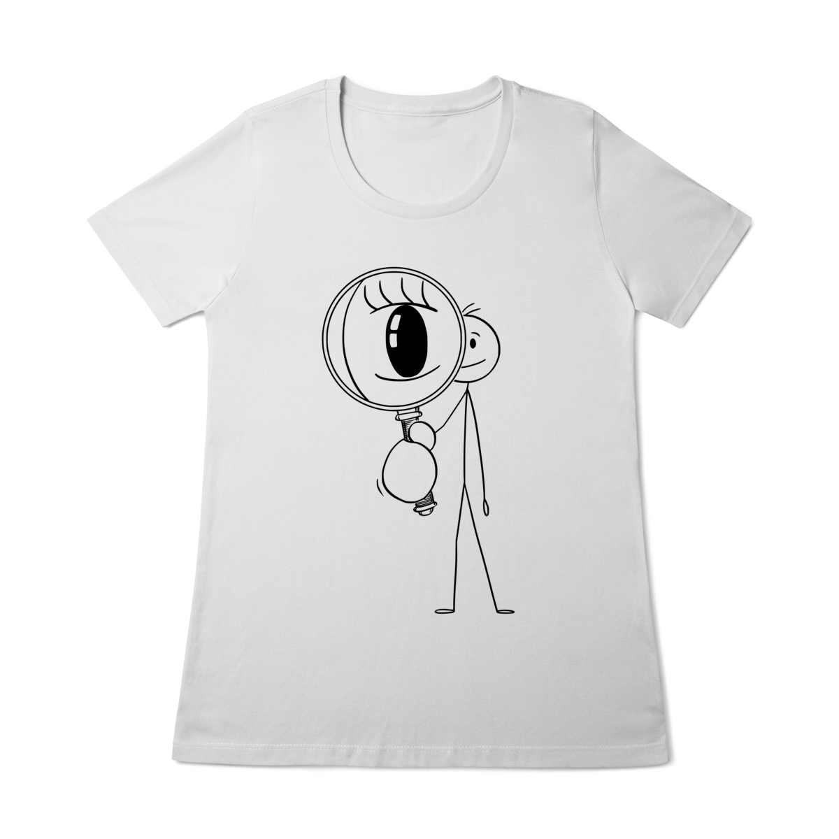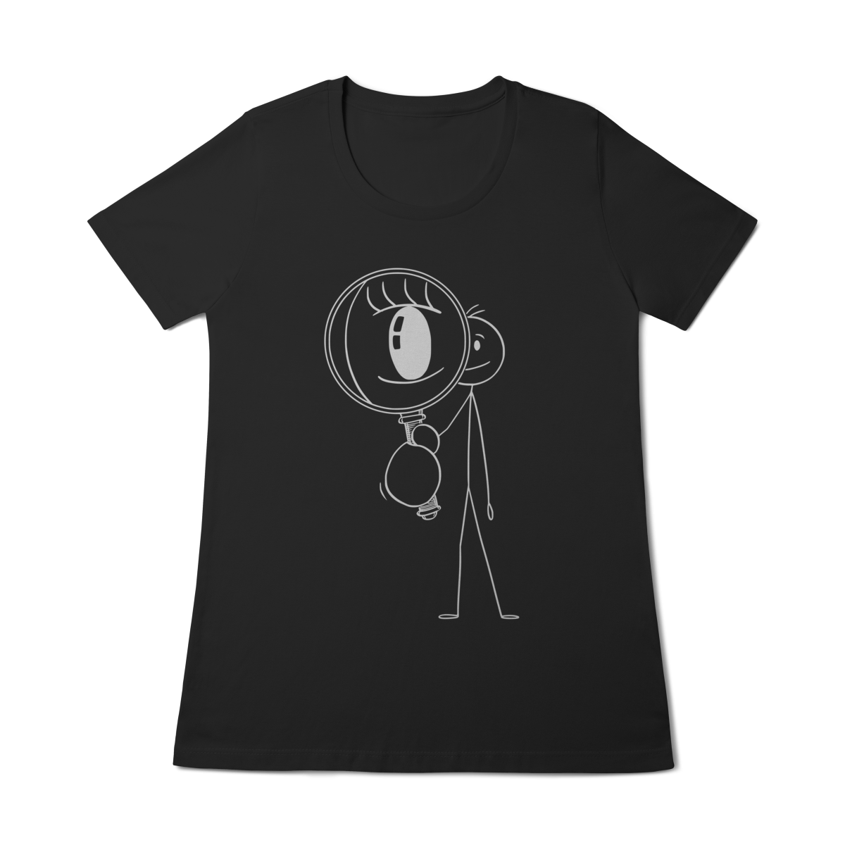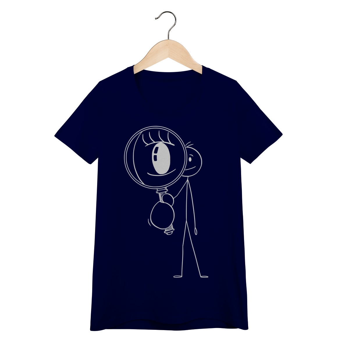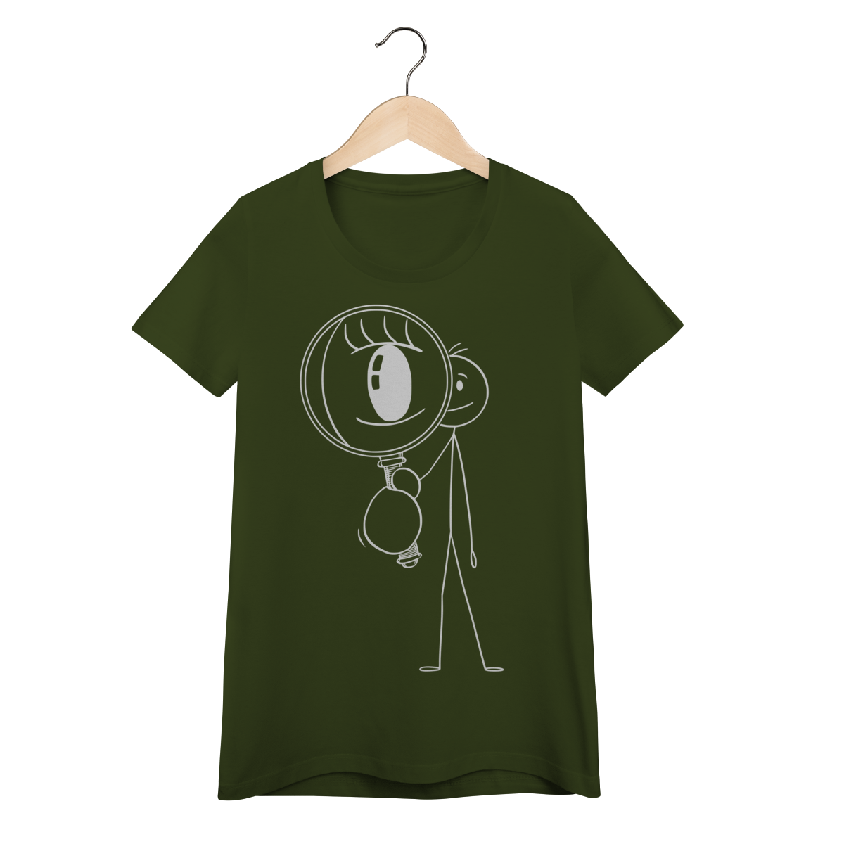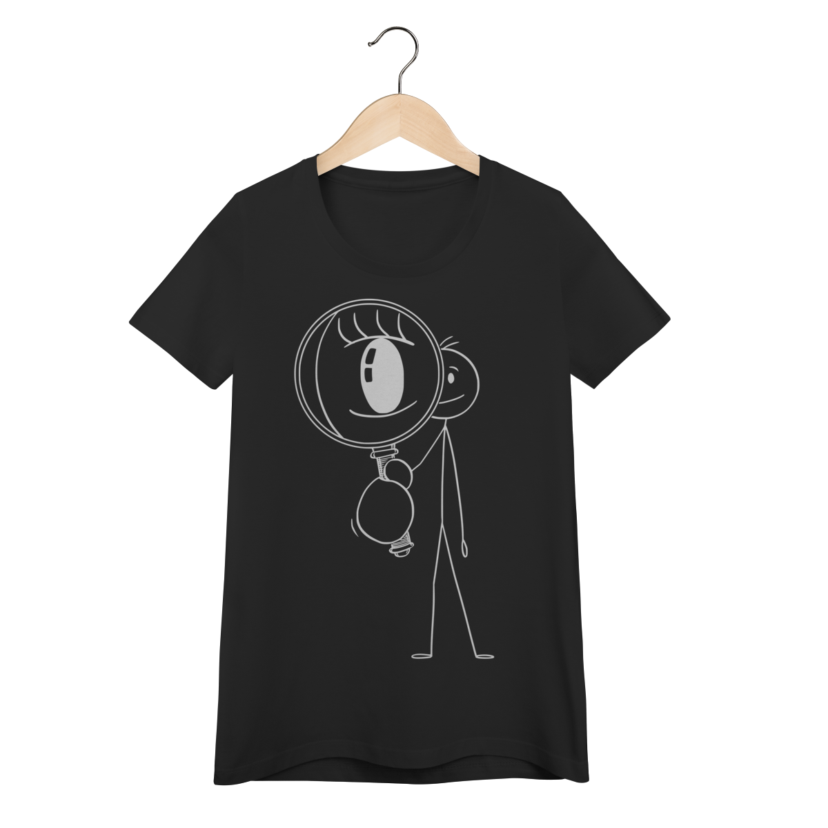 Mergulhe no mistério com esta camiseta que inspira curiosidade: um bonequinho observando com lupa, o olho destacado — uma metáfora visual para quem busca provas invisíveis e rastros que poucos enxergam.