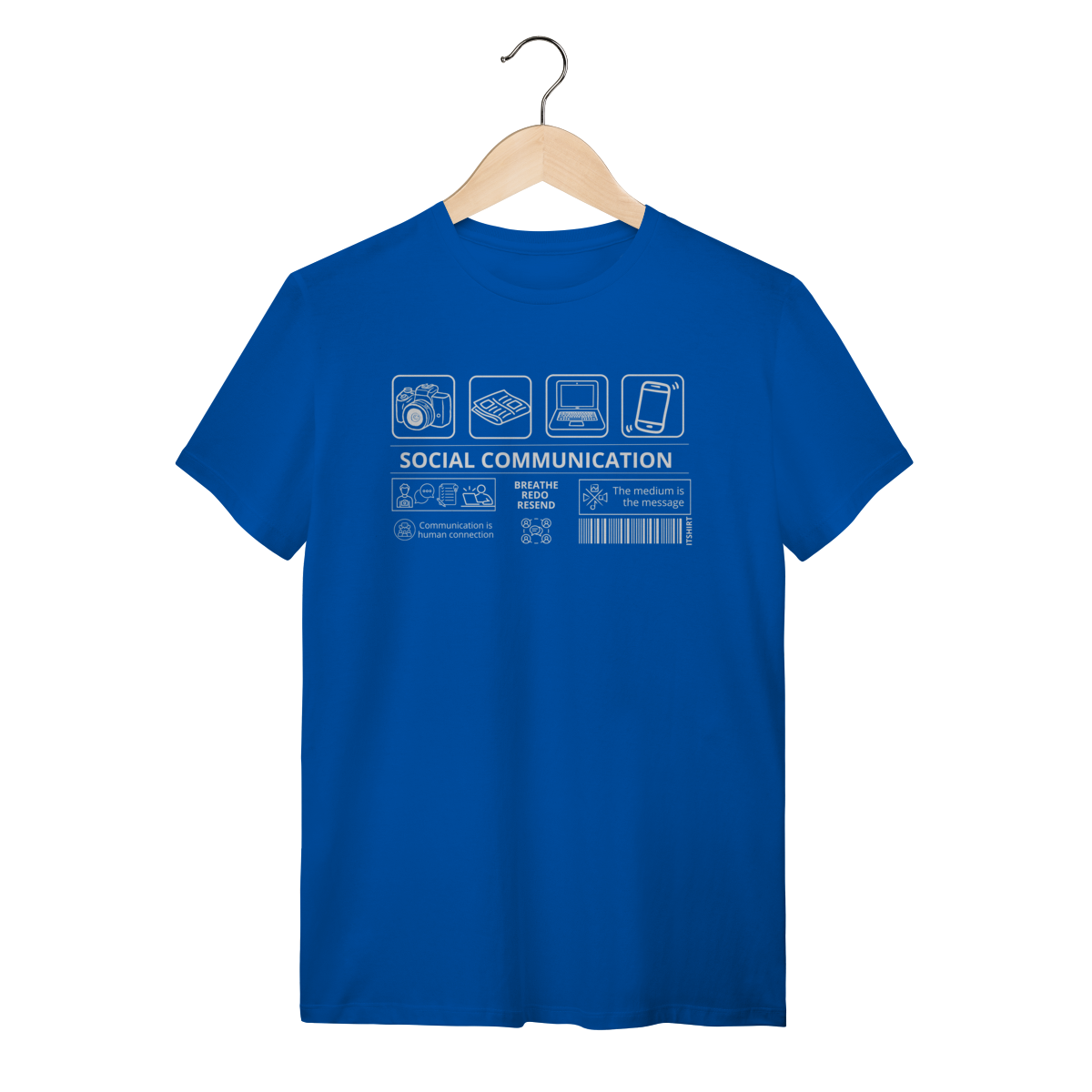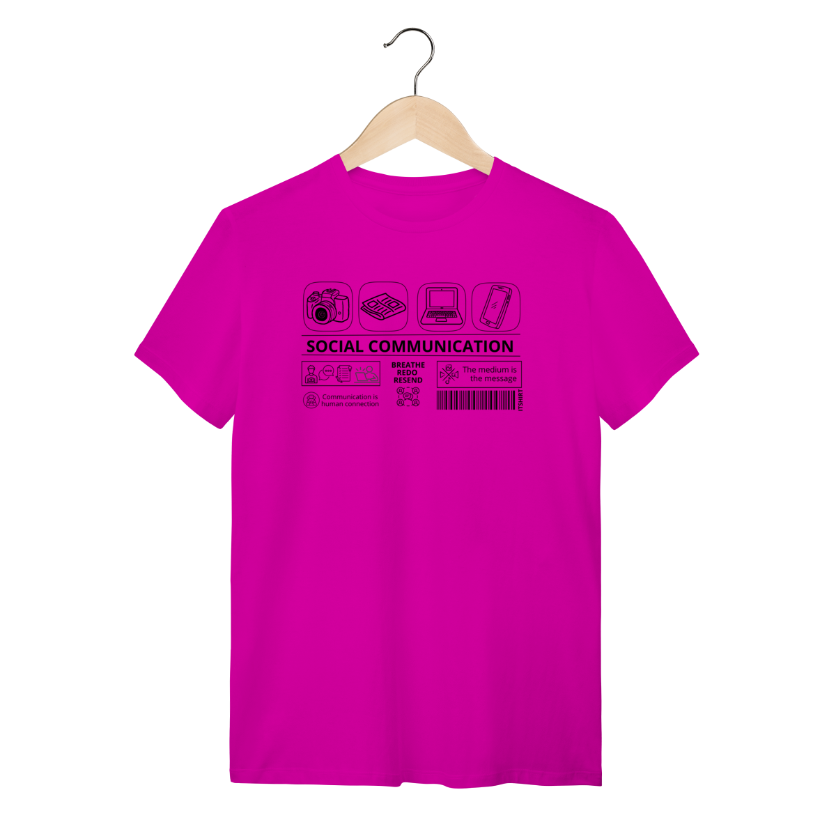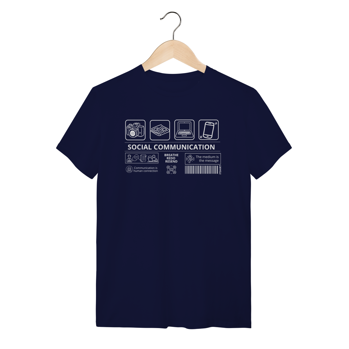 Vista a essência da comunicação com esta camiseta exclusiva da área de Comunicação Social. No centro, a frase “Comunicação Social” aparece com destaque — e ao redor, vários ícones que simbolizam os diferentes meios e faces da profissão.