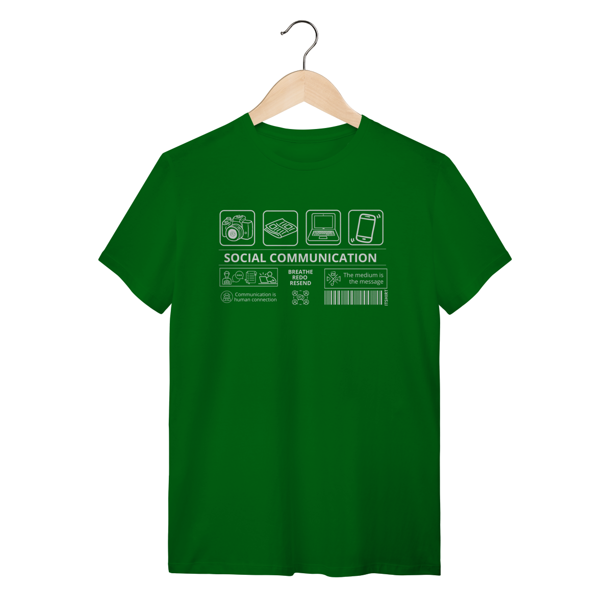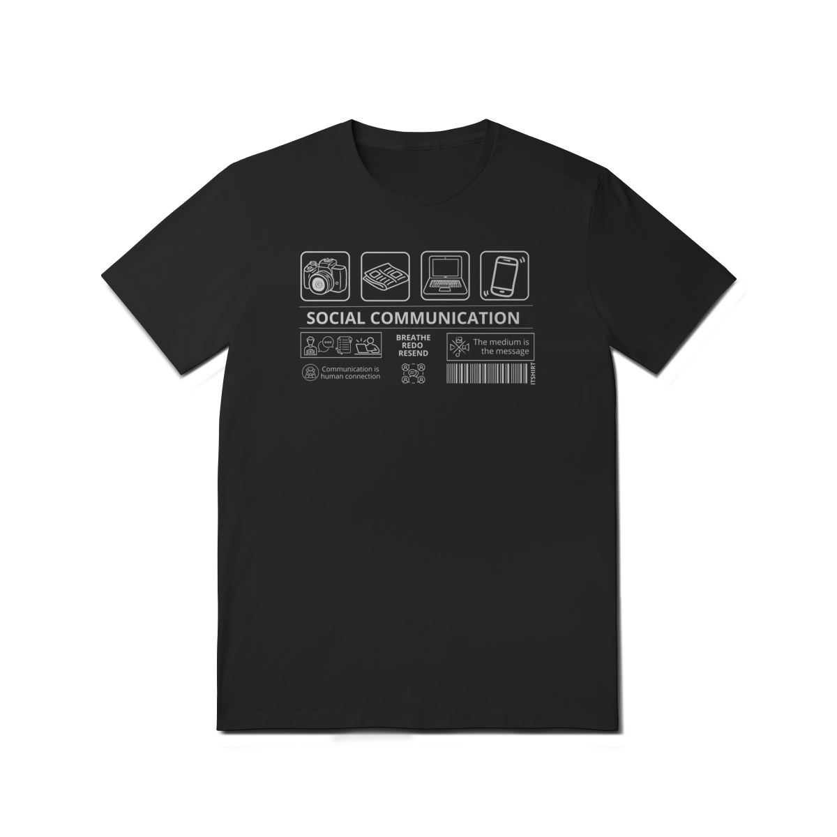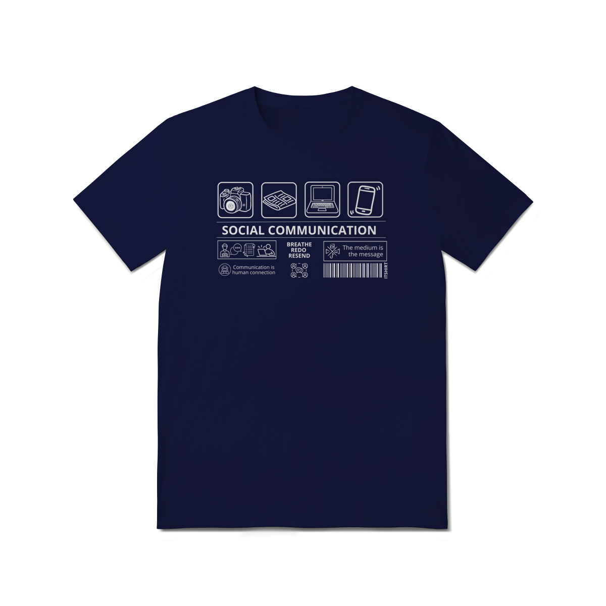 Vista a essência da comunicação com esta camiseta exclusiva da área de Comunicação Social. No centro, a frase “Comunicação Social” aparece com destaque — e ao redor, vários ícones que simbolizam os diferentes meios e faces da profissão.