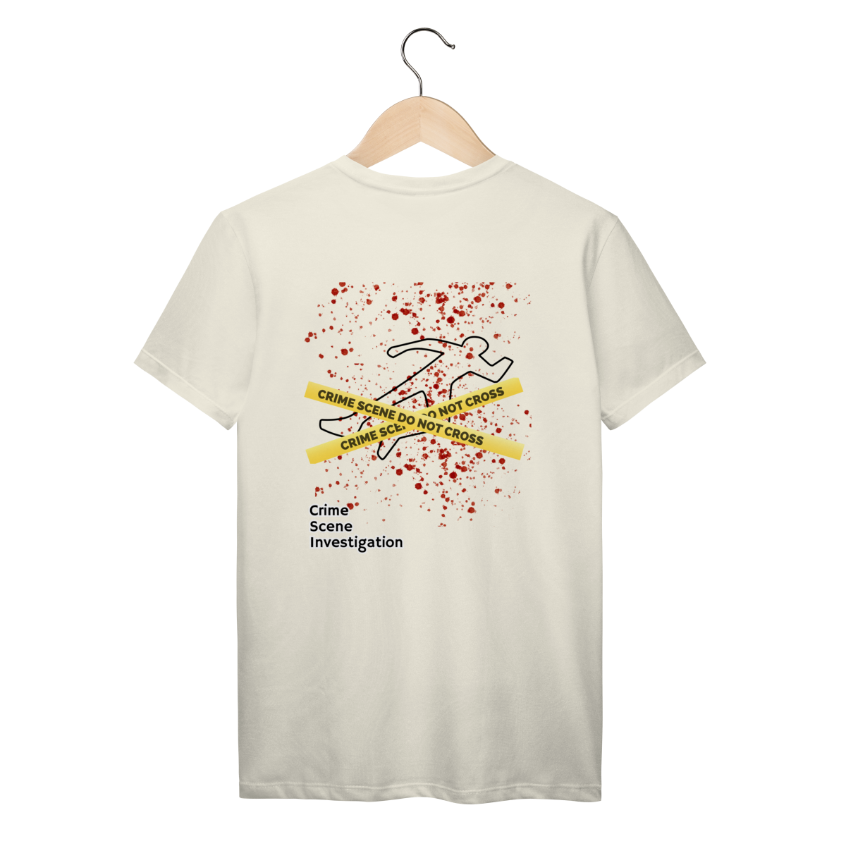 Combine curiosidade, estilo e ciência forense com esta camiseta exclusiva, inspirada nos marcadores numéricos usados em cenas de crime reais.