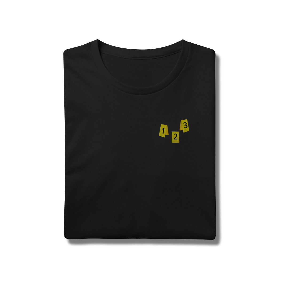 Descubra um design criativo e autêntico que reproduz os icônicos “evidence markers” – aqueles triângulos ou plaquinhas numeradas em amarelo que policiais e peritos utilizam para destacar evidências em cenas criminais.