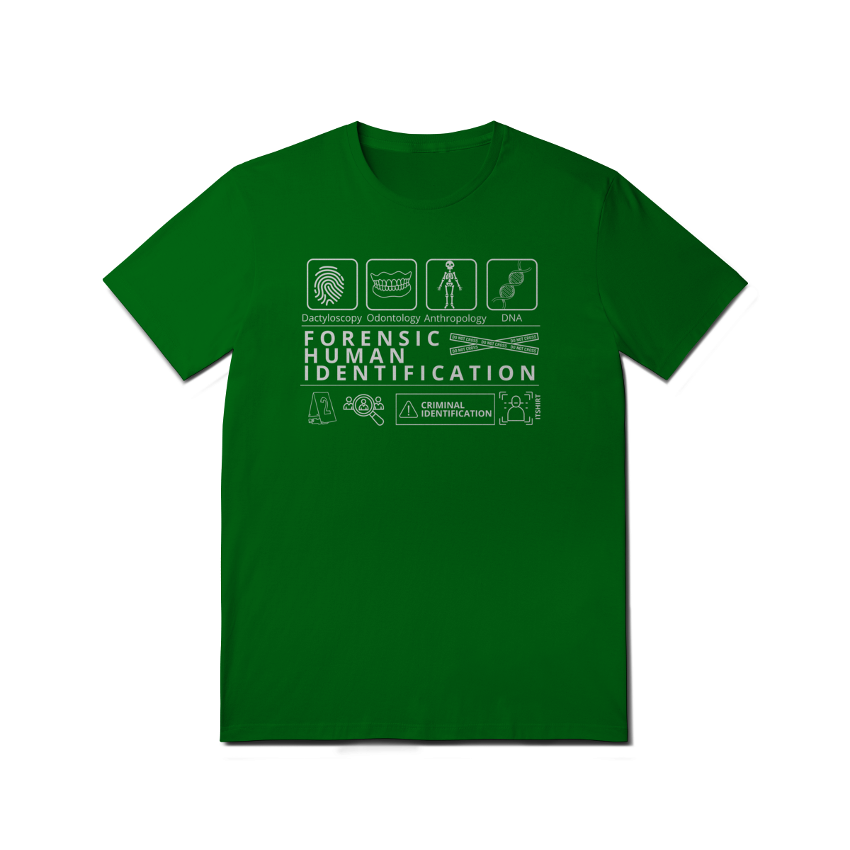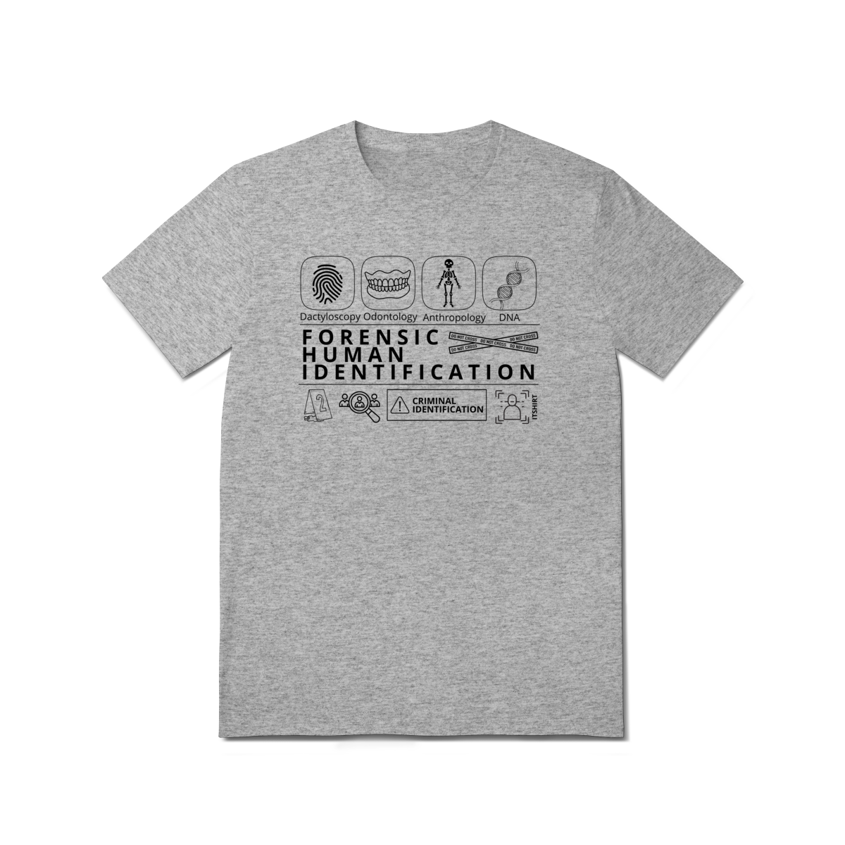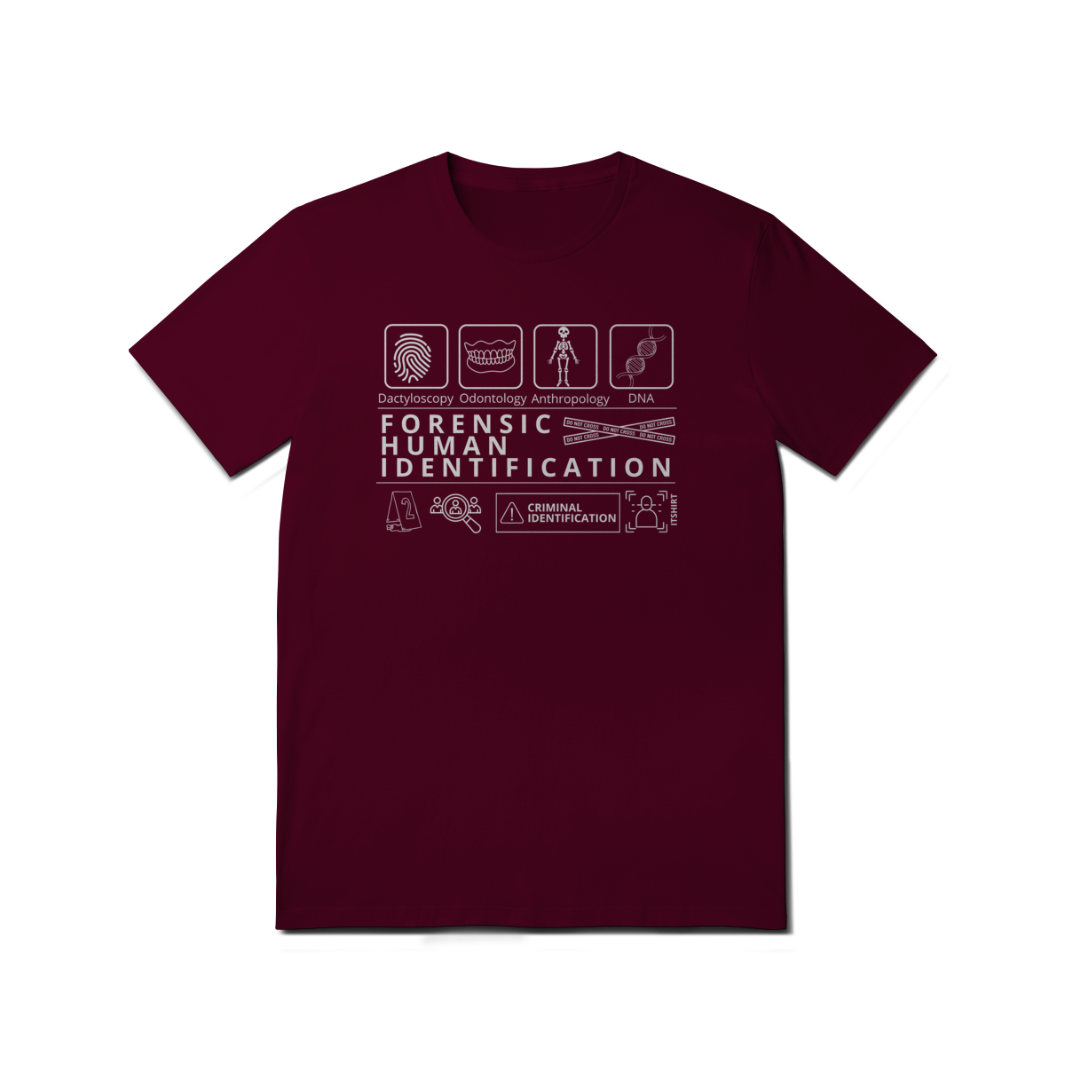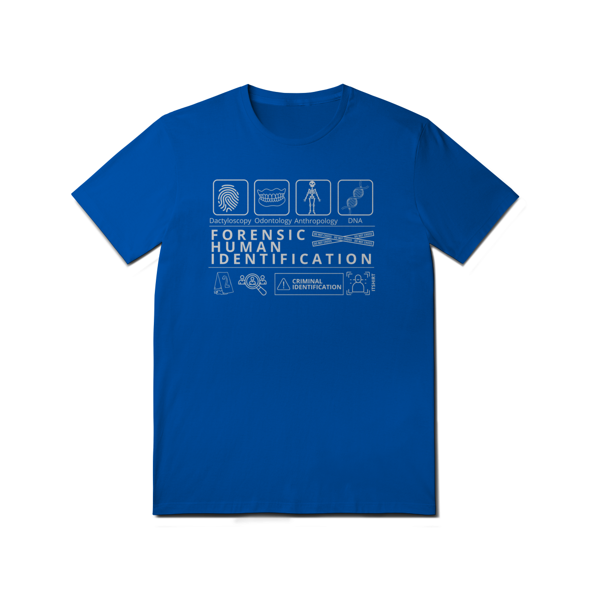 Esta camiseta tem uma estampa inspirada nos principais métodos forenses: papiloscopia, antropologia, odontologia legal e DNA — formando um visual que homenageia a precisão científico-forense. Design exclusivo e significativo: reúne os campos mais relevantes da perícia de identificação, celebrando cada técnica como parte essencial da investigação criminal e humana.