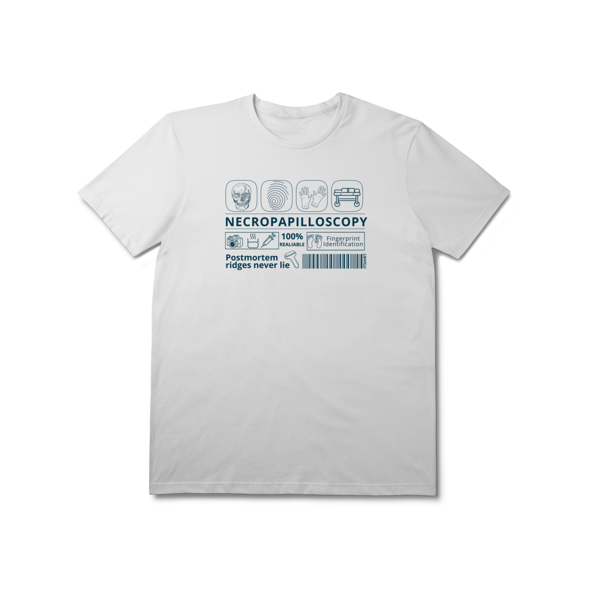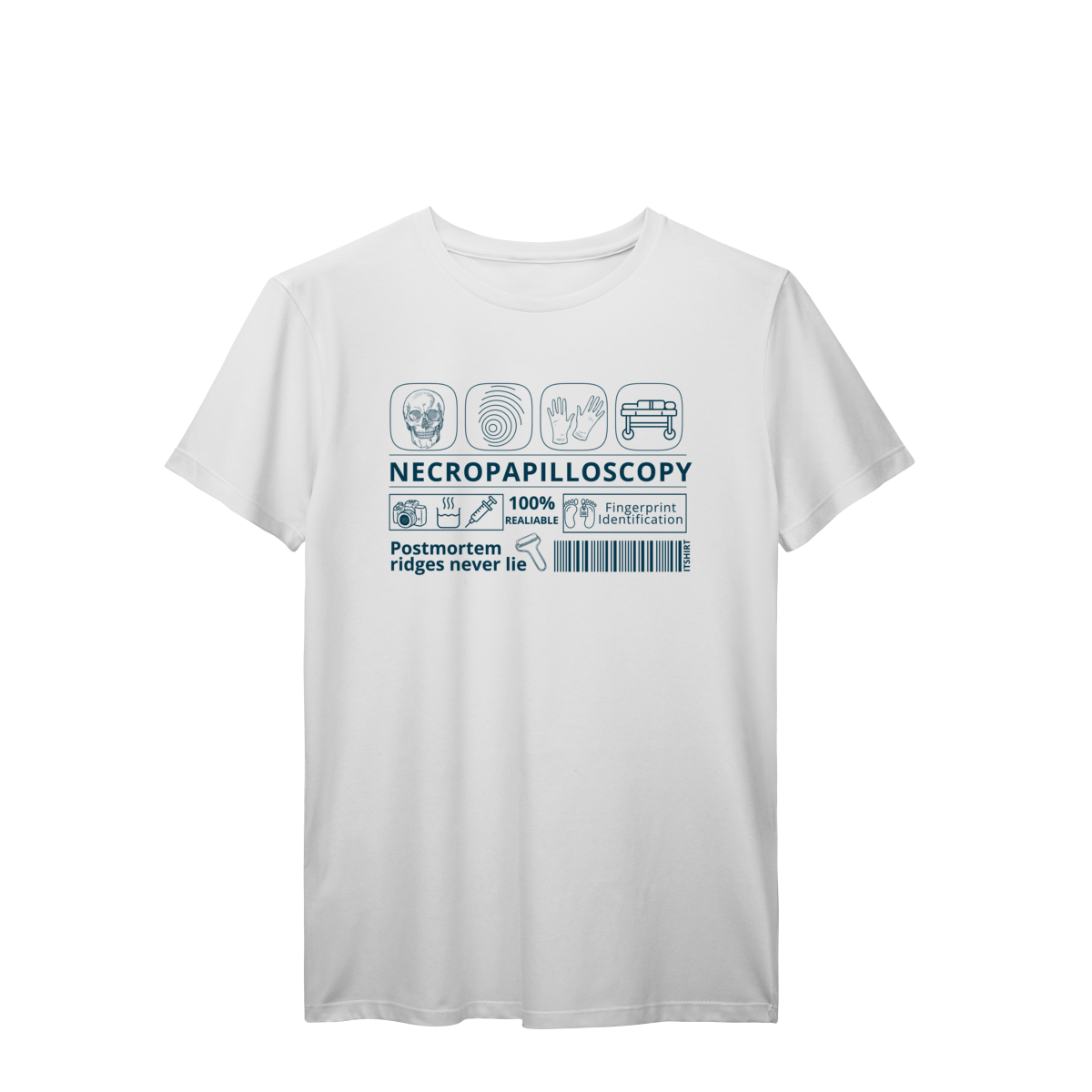 Celebre a ciência da identificação humana com estilo e propósito. Esta camiseta traz a palavra “Necropapiloscopia” em destaque, acompanhada por ilustrações que lembram os métodos usados nessa técnica.