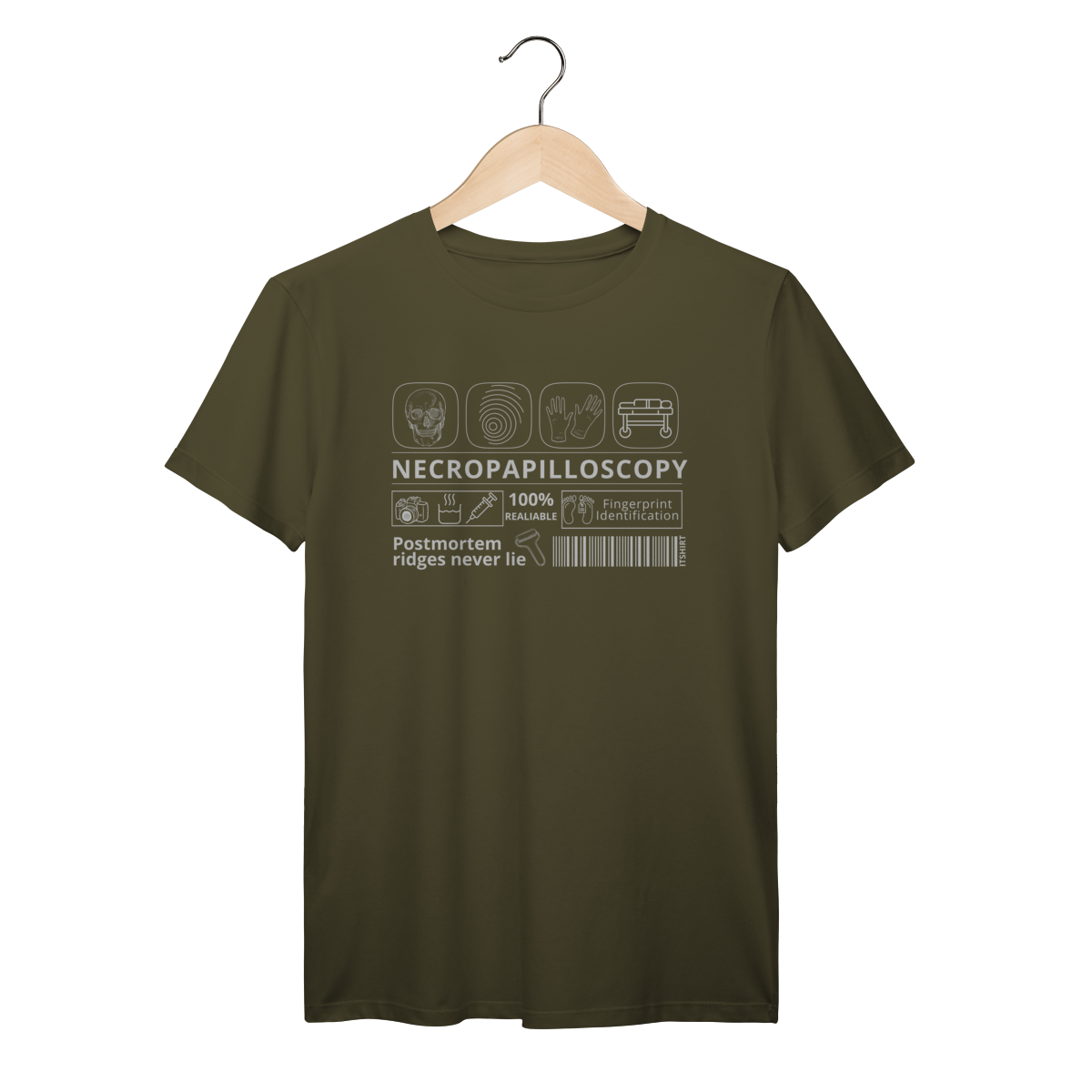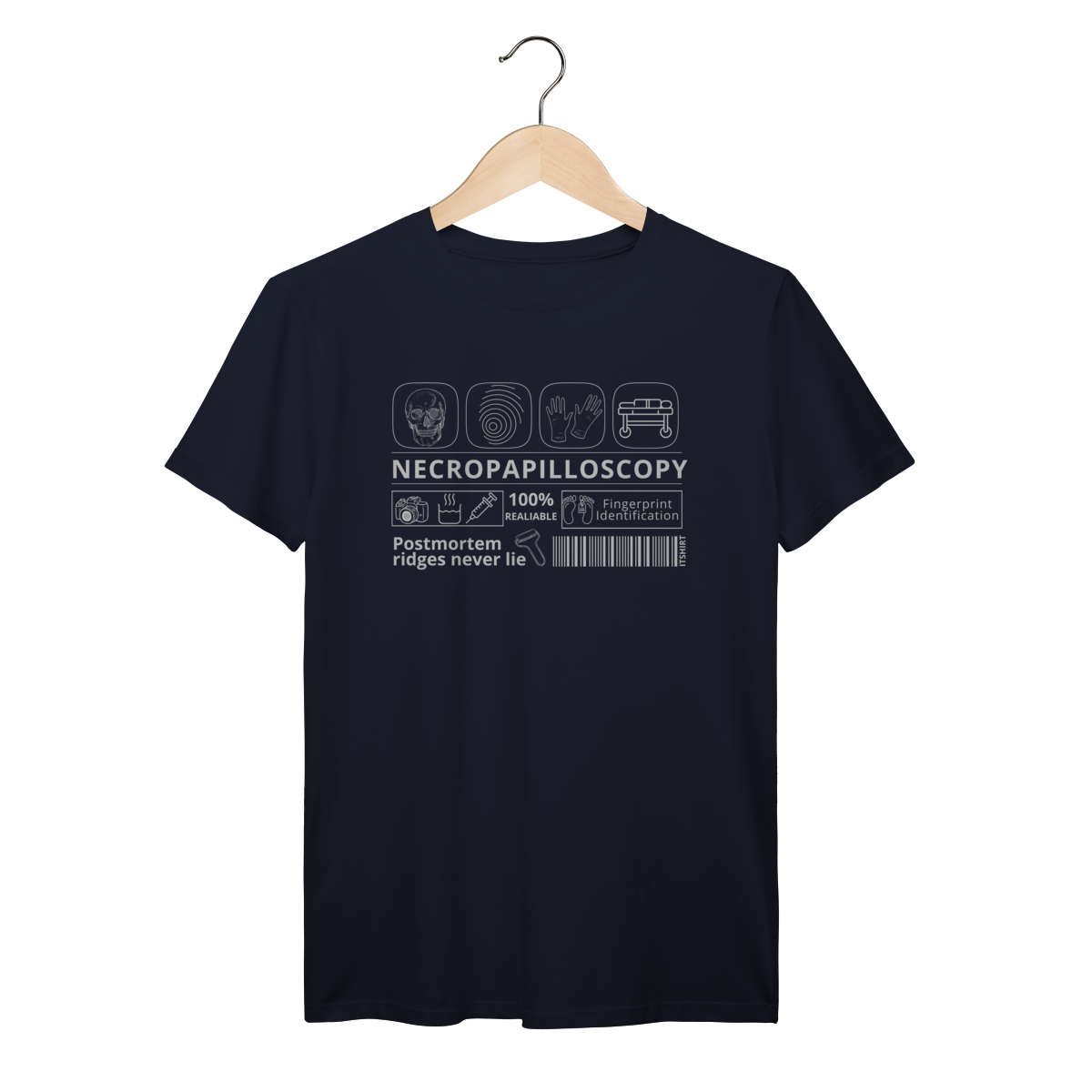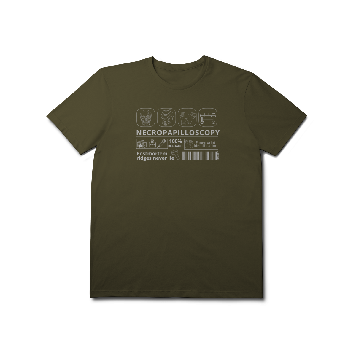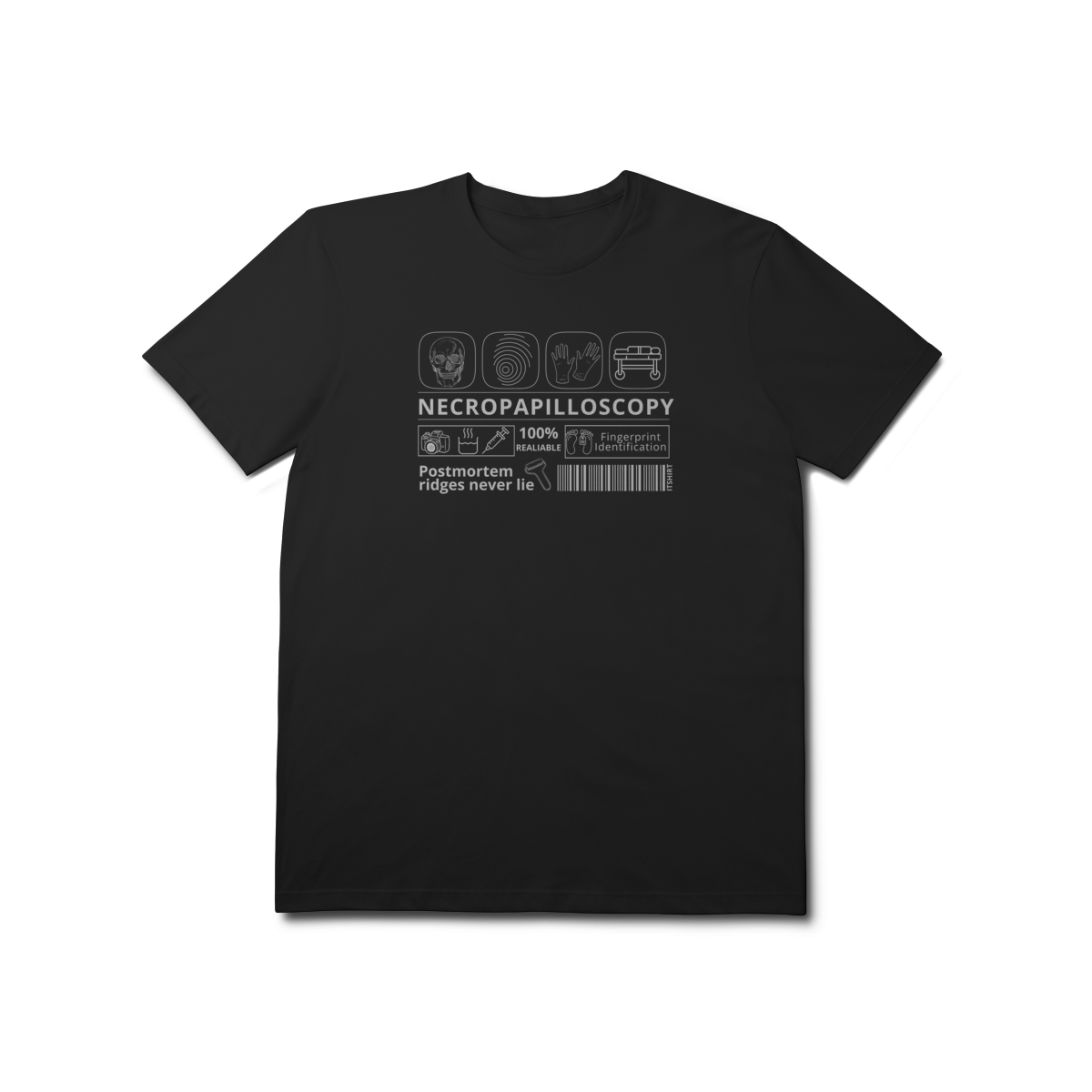 Celebre a ciência da identificação humana com estilo e propósito. Esta camiseta traz a palavra “Necropapiloscopia” em destaque, acompanhada por ilustrações que lembram os métodos usados nessa técnica.