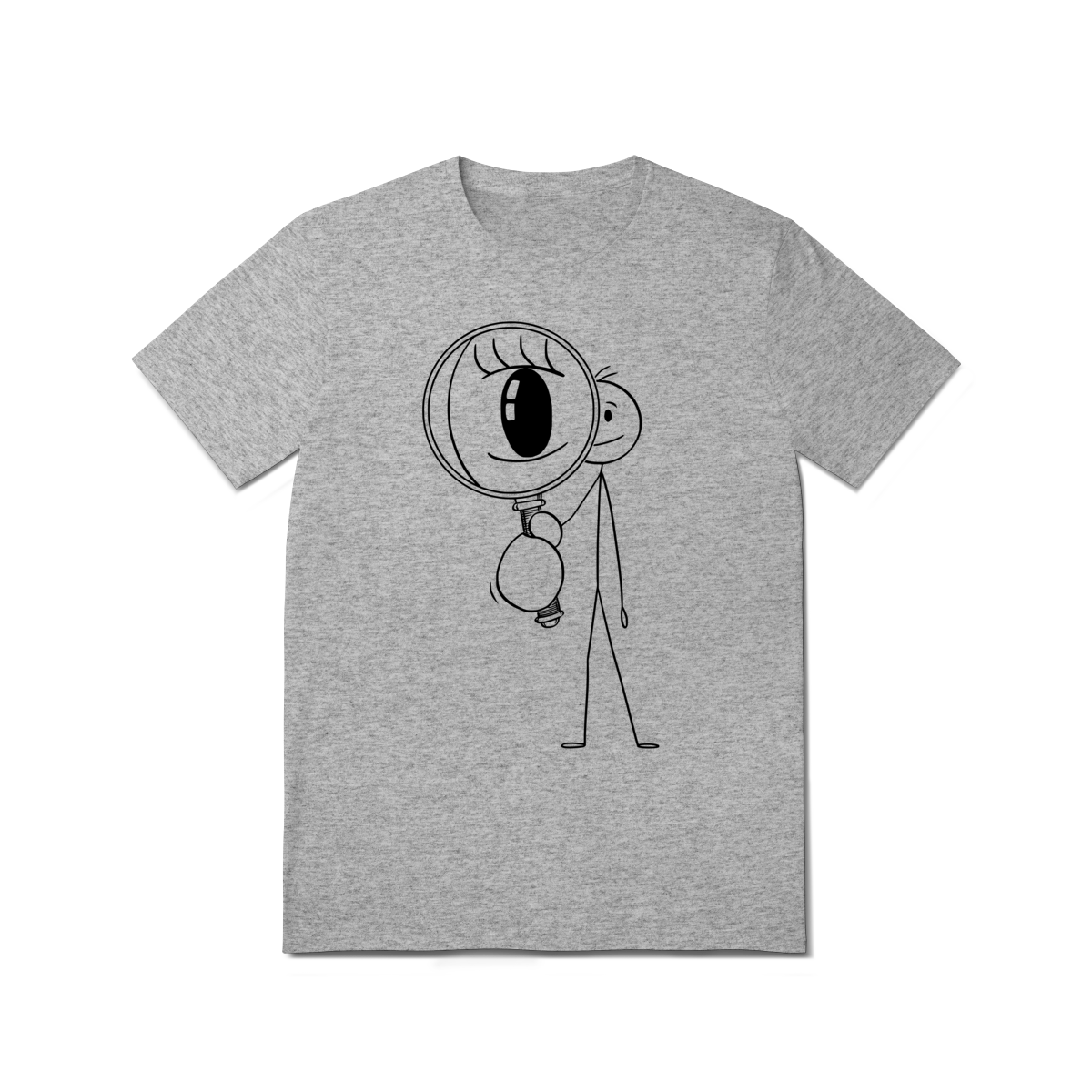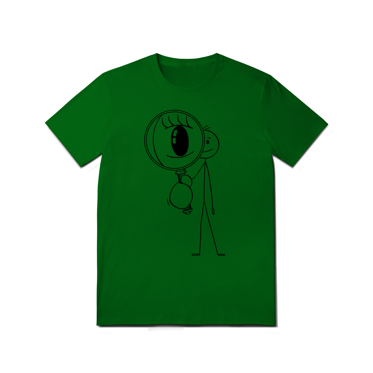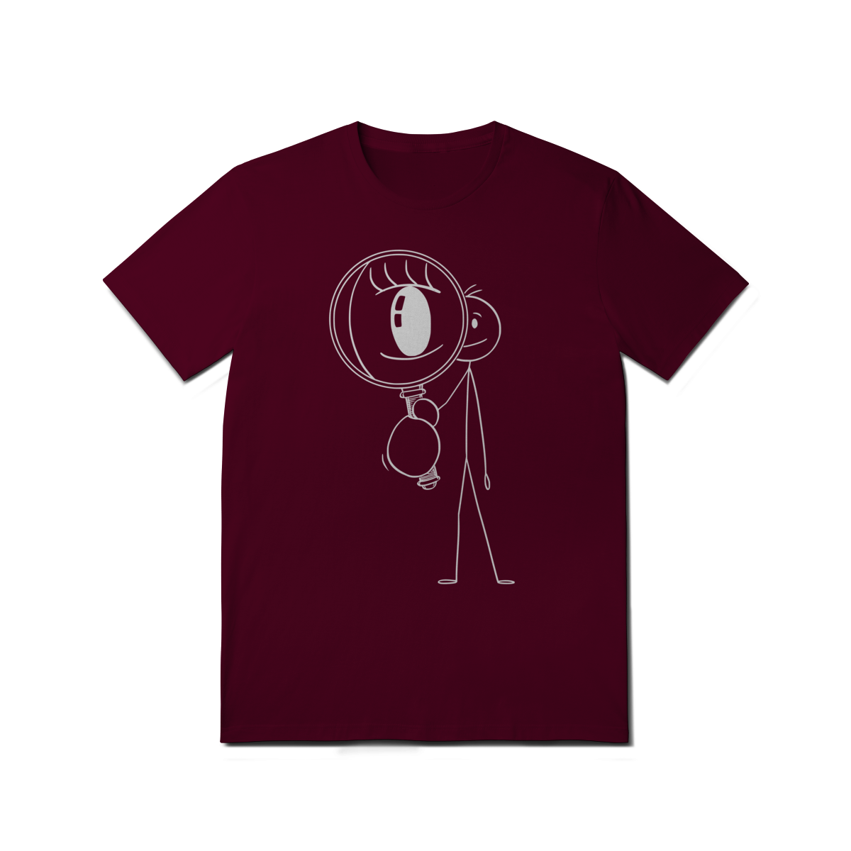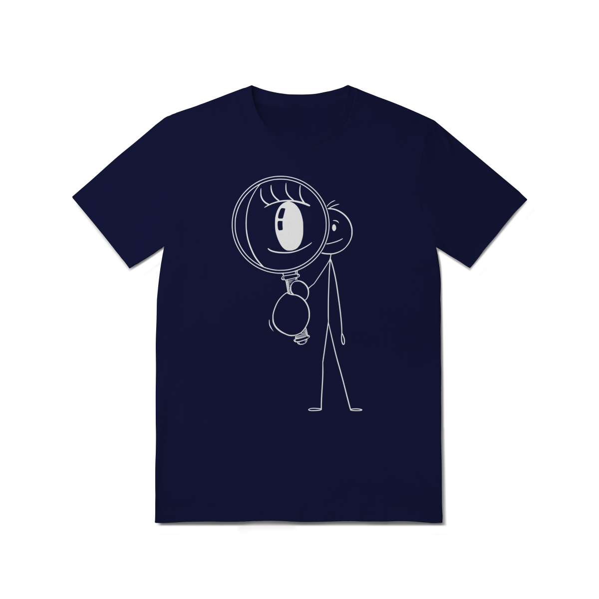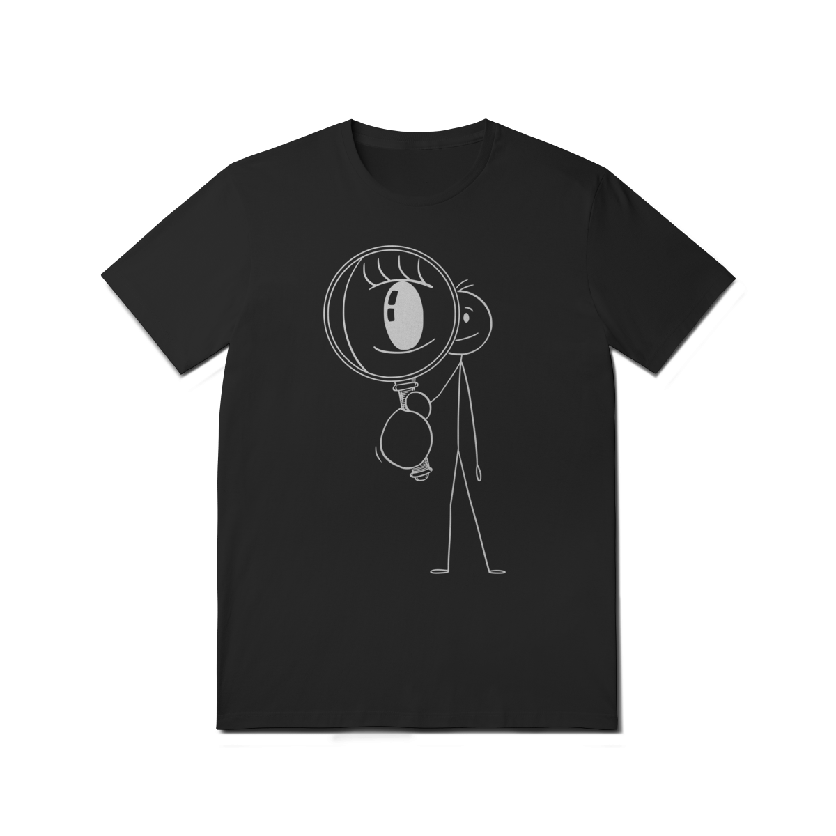 Mergulhe no mistério com esta camiseta que inspira curiosidade: um bonequinho observando com lupa, o olho destacado — uma metáfora visual para quem busca provas invisíveis e rastros que poucos enxergam.