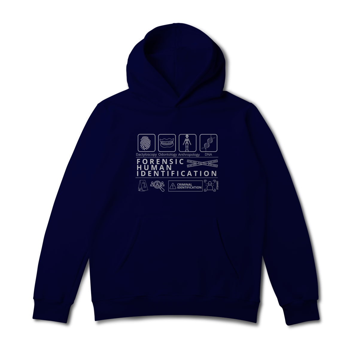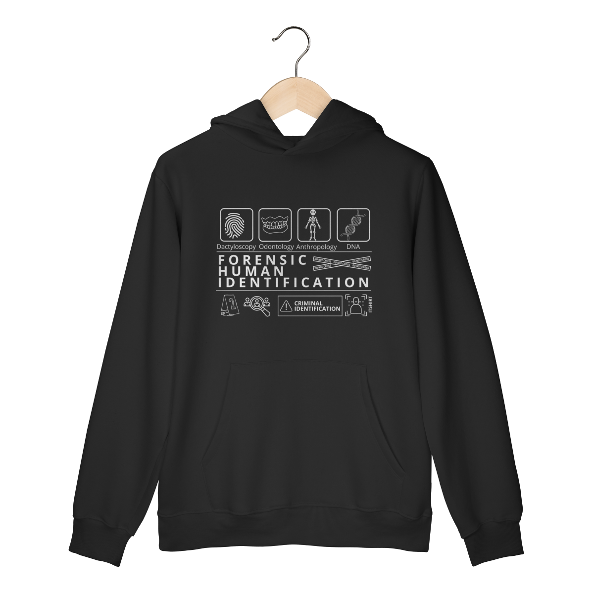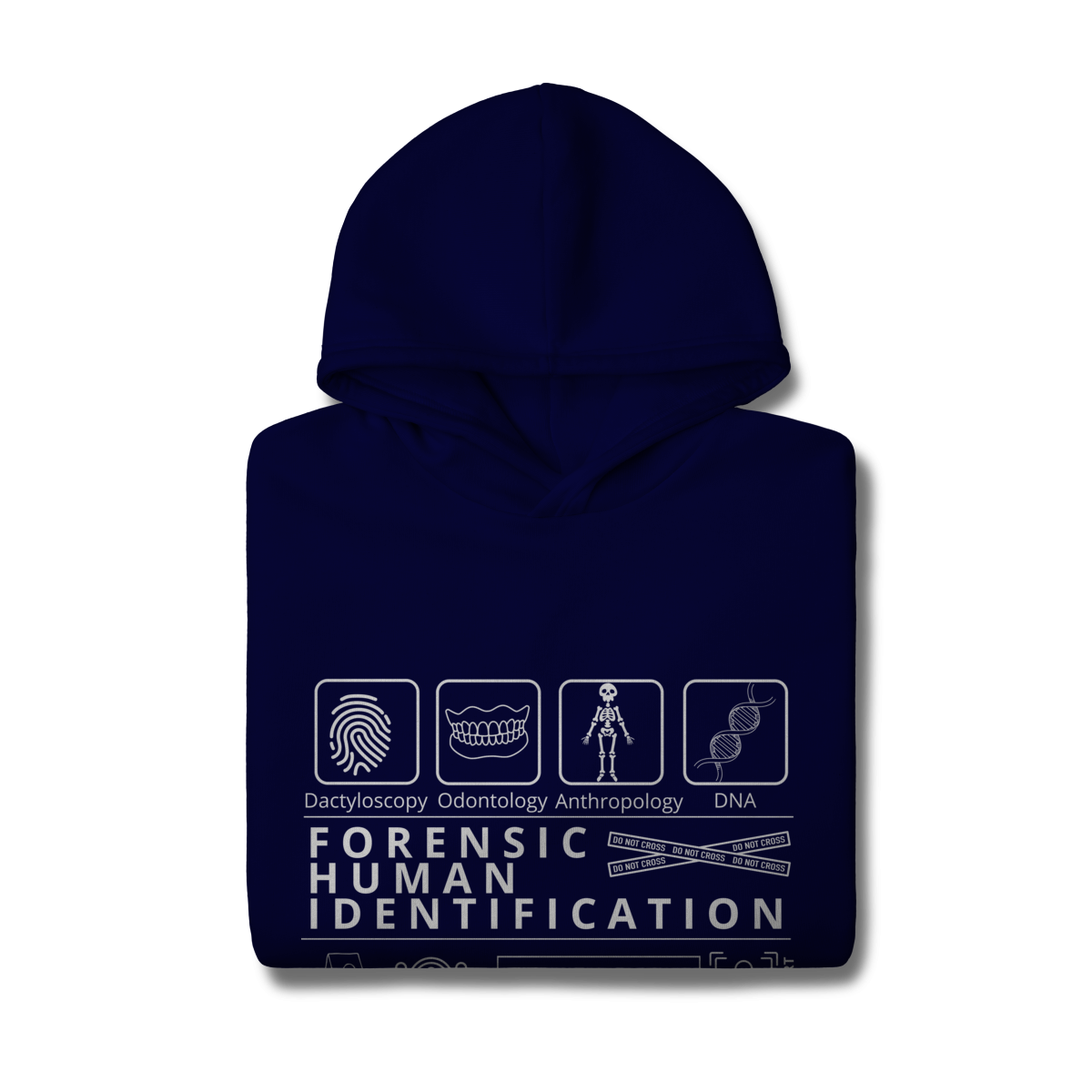 Esta camiseta tem uma estampa inspirada nos principais métodos forenses: papiloscopia, antropologia, odontologia legal e DNA — formando um visual que homenageia a precisão científico-forense. Design exclusivo e significativo: reúne os campos mais relevantes da perícia de identificação, celebrando cada técnica como parte essencial da investigação criminal e humana.
