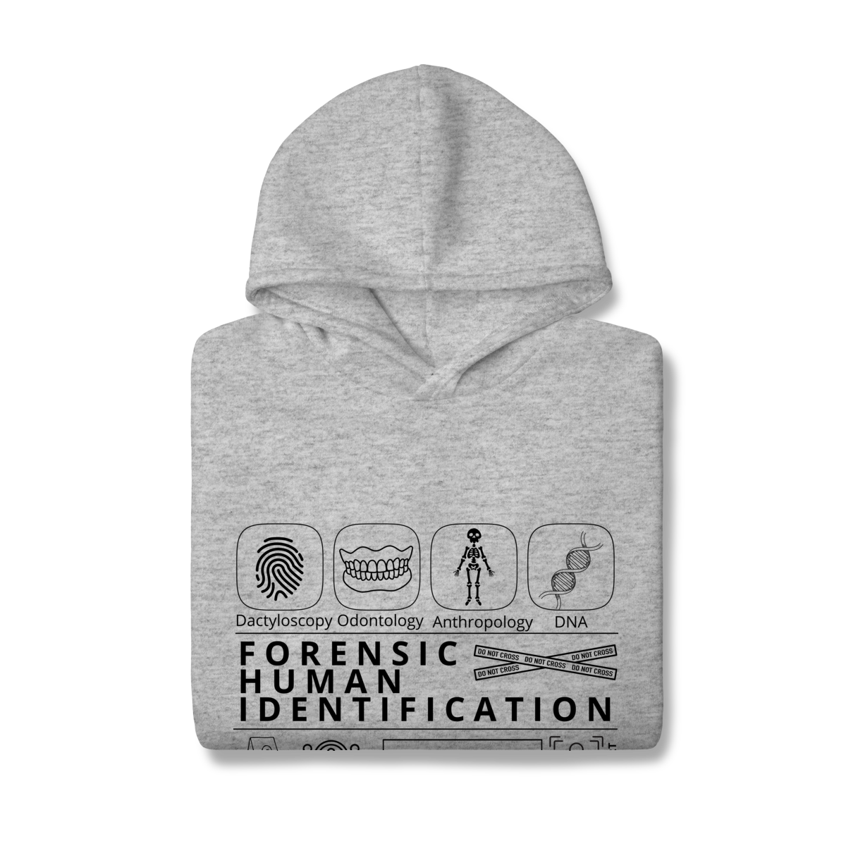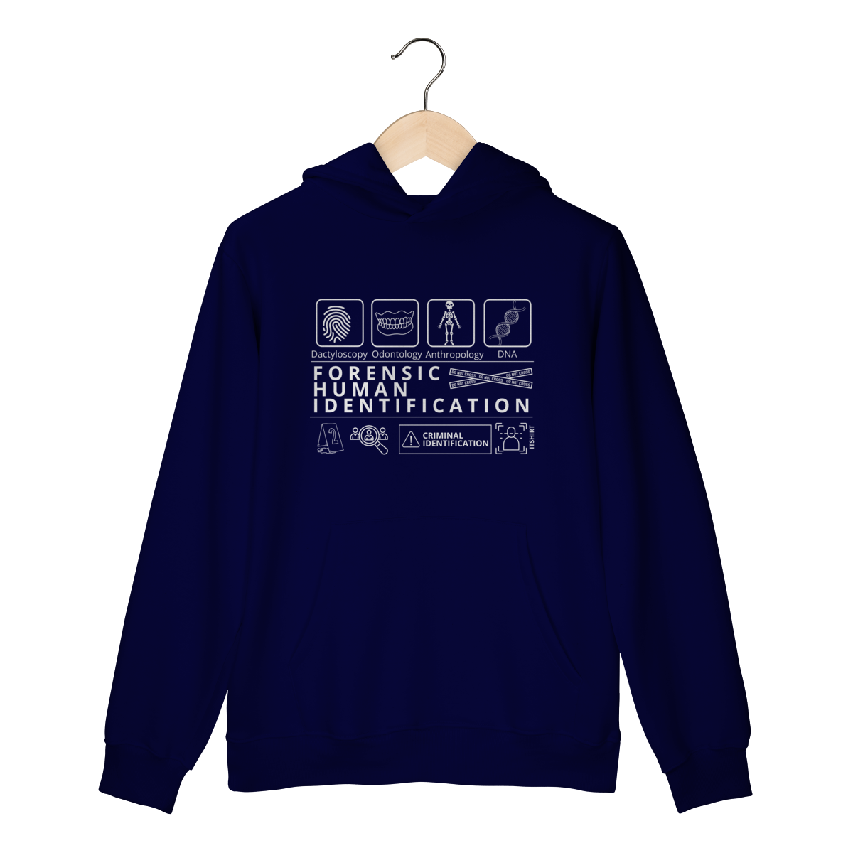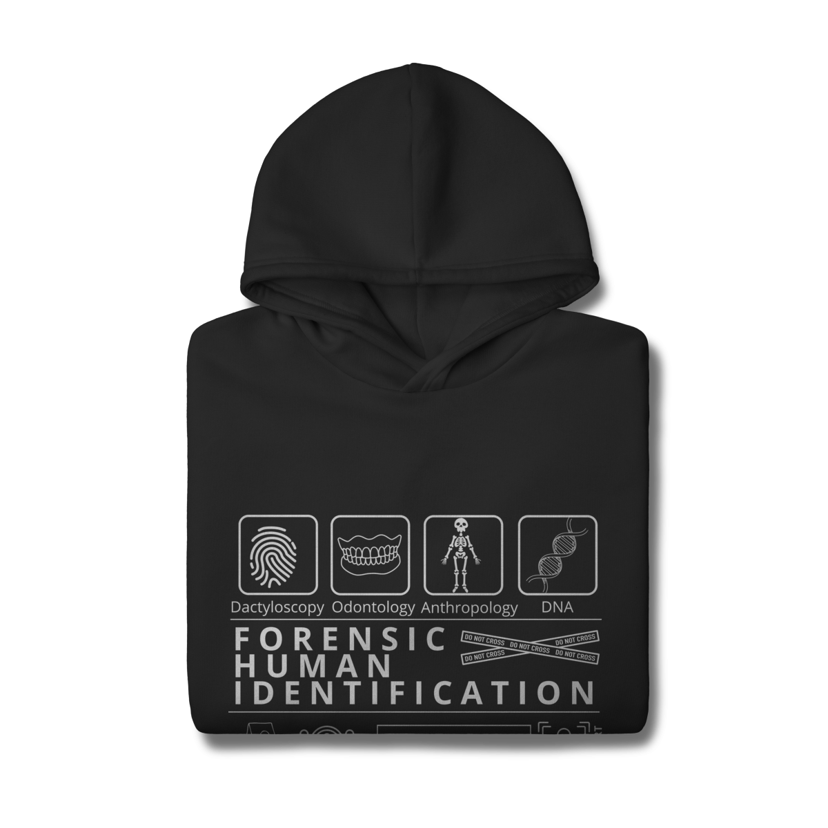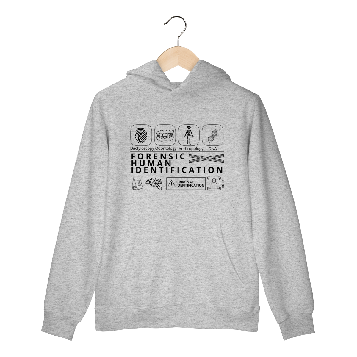Esta camiseta tem uma estampa inspirada nos principais métodos forenses: papiloscopia, antropologia, odontologia legal e DNA — formando um visual que homenageia a precisão científico-forense. Design exclusivo e significativo: reúne os campos mais relevantes da perícia de identificação, celebrando cada técnica como parte essencial da investigação criminal e humana.