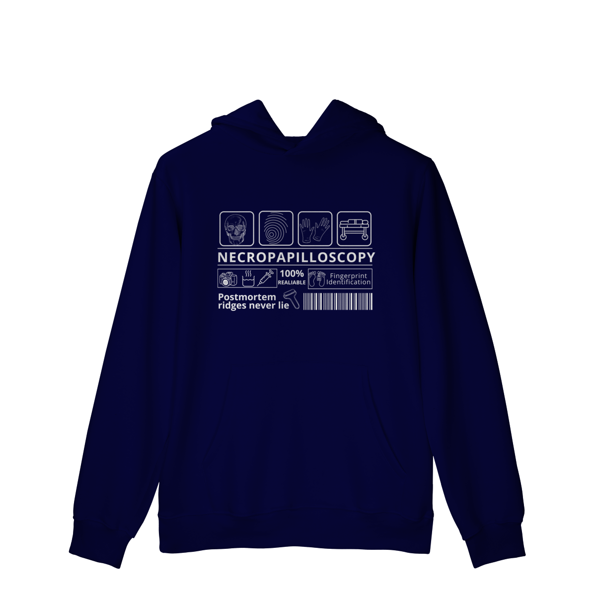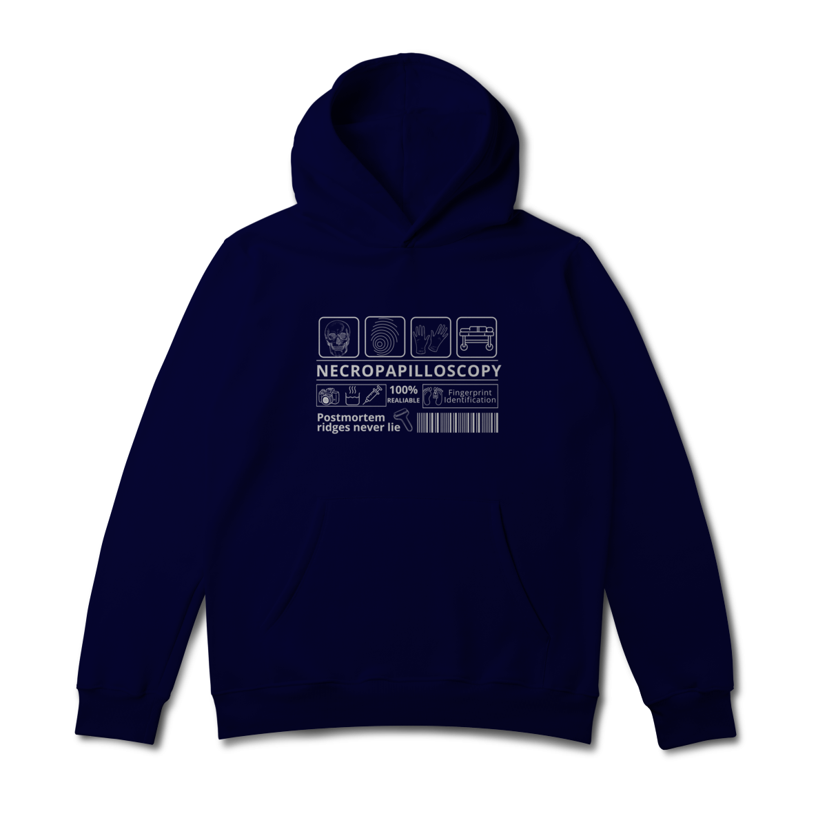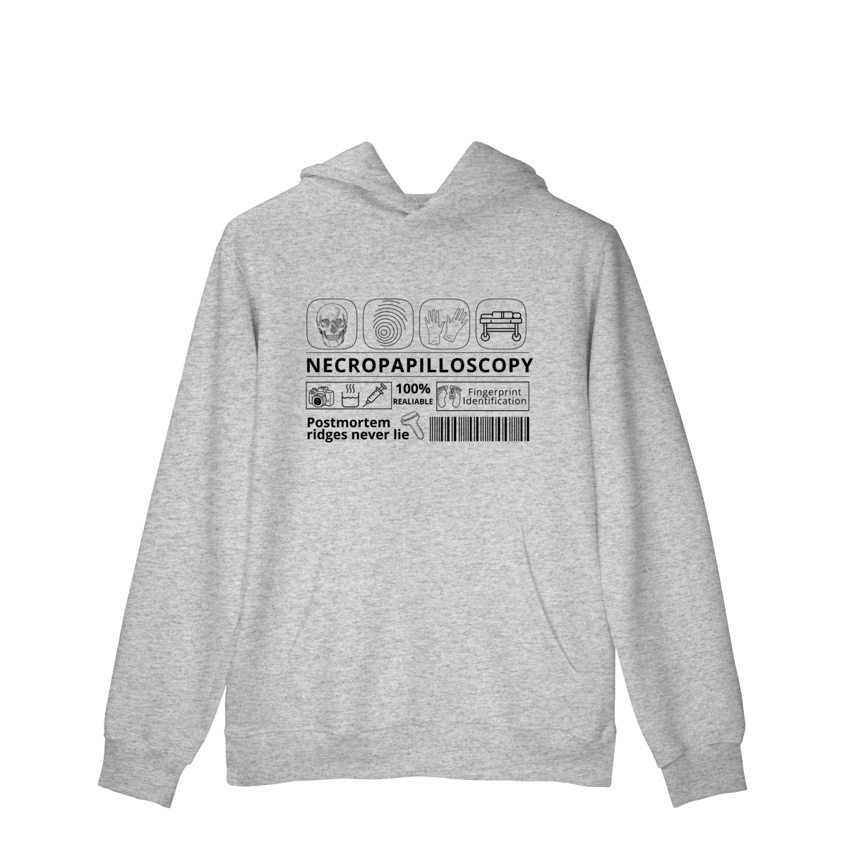 Celebre a ciência da identificação humana com estilo e propósito. Esta camiseta traz a palavra “Necropapiloscopia” em destaque, acompanhada por ilustrações que lembram os métodos usados nessa técnica.