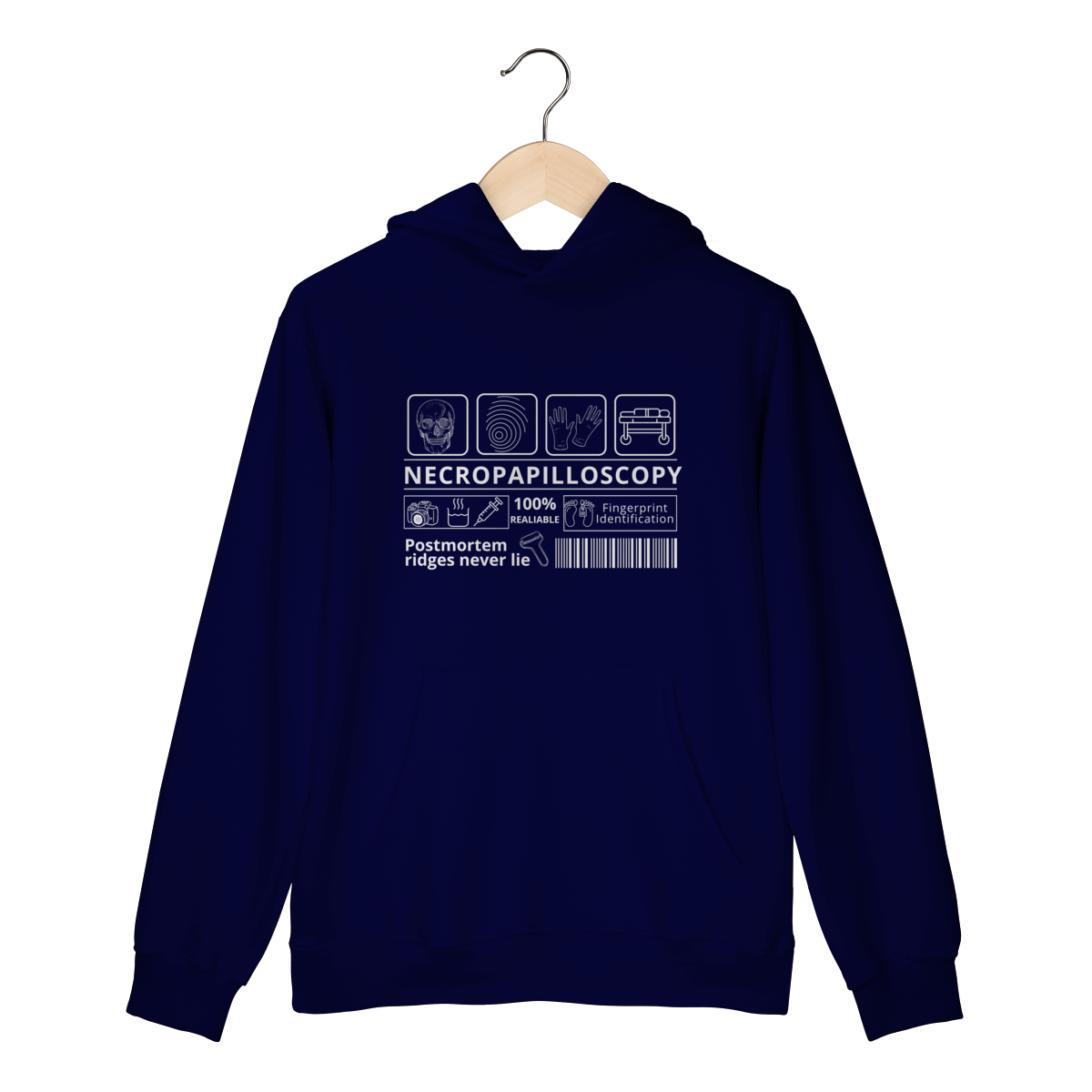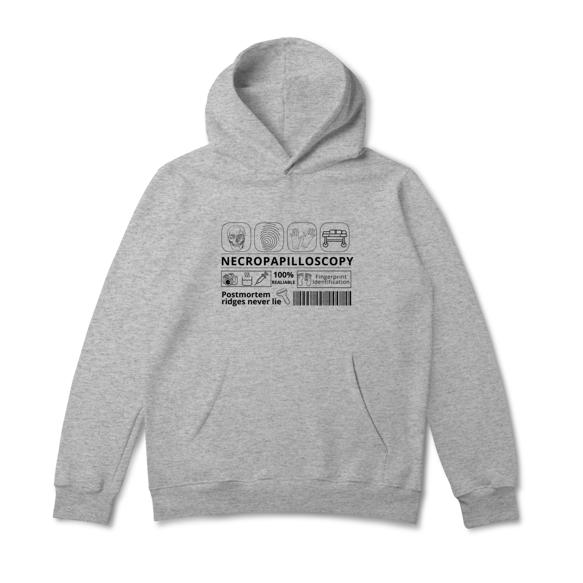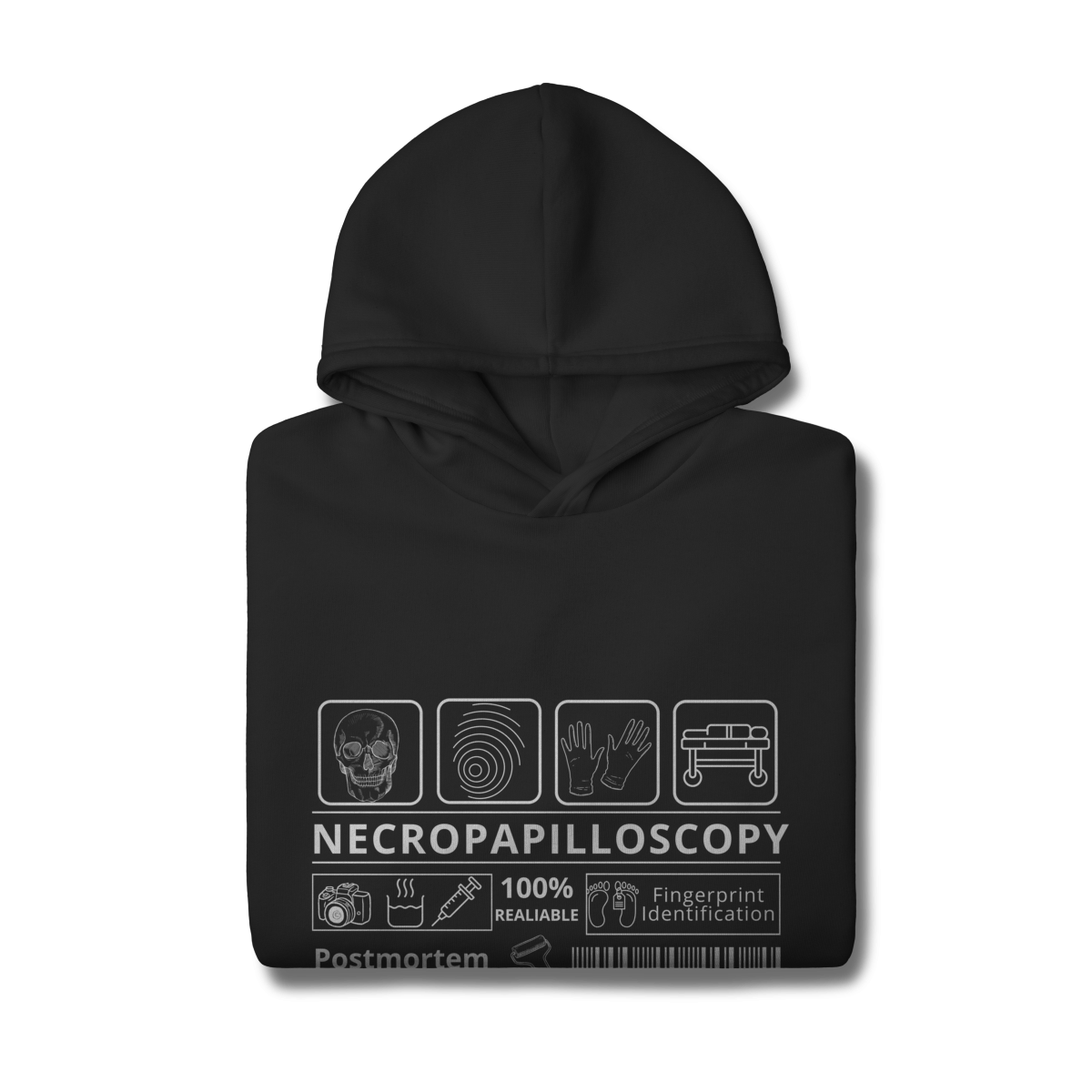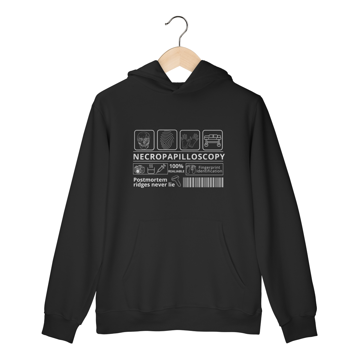 Celebre a ciência da identificação humana com estilo e propósito. Esta camiseta traz a palavra “Necropapiloscopia” em destaque, acompanhada por ilustrações que lembram os métodos usados nessa técnica.